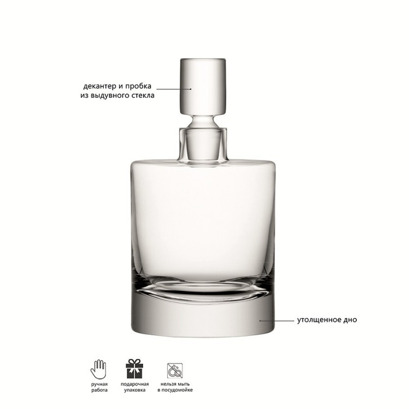 Декантер из выдувного стекла с утолщенным дном и пробкой ручной работы из коллекции Boris подчеркнет красоту насыщенного цвета любого благородного напитка.Особенности и преимущества:- Посуда из выдувного стекла отличается прочностью, высокой прозрачностью, не имеет производственных швов, благодаря чему выглядит эстетично и изысканно. - Сочетание тонких стенок и утолщенного, тяжелого основания обеспечивает изделию презентабельный вид и прекрасные эксплуатационные характеристики. - Пробка декантера заточена вручную опытными мастерами и имеет уникальную форму.Boris – знаменитая коллекция стеклянной посуды для бара от LSA International, созданная искусными мастерами-стеклодувами. Все предметы линейки выполнены вручную, имеют уникальную цилиндрическую форму, тонкие стенки и утолщенное, тяжелое основание.Важно! Поскольку изделие изготавливается вручную, его размеры могут незначительно отличаться и допускается наличие пузырьков в толще стекла: круглые < 3 мм, овальные < 5 мм и их небольшие скопления в виде пены. Также возможно наличие прожилок (видимых нитей) на стекле менее 50% длины окружности любого предмета. Все это не брак, а допустимые индивидуальные особенности товаров, произведенных ручным способом.Материал: выдувное стекло. Объем: 1,4 л. Размеры: 13х13х25,5 см.Декантер рекомендуется мыть вручную в теплой мыльной воде, после чего протирать сухой мягкой тканью.