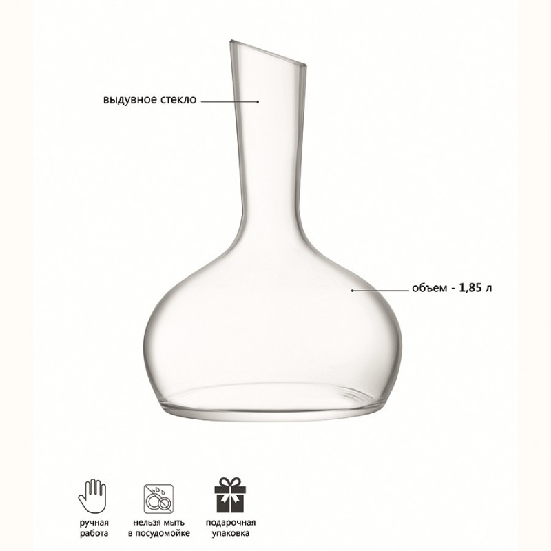 Декантер Wine идеально подойдет для сервировки элитных сортов вина. Изделие выполнено из прозрачного выдувного стекла. При комбинировании его с бокалами и другими предметами коллекции Wine можно создать идеальную композицию, которая подчеркнет роскошную сервировку торжественных мероприятий или уютных домашних вечеров.Коллекция бокалов, декантеров и графинов из выдувного стекла Wine — настоящее торжество стиля и вкуса, воплощенное в минималистичном дизайне.Важно! Поскольку изделие изготавливается вручную, его размеры могут незначительно отличаться и допускается наличие пузырьков в толще стекла: круглые < 3 мм, овальные < 5 мм и их небольшие скопления в виде пены. Также возможно наличие прожилок (видимых нитей) на стекле менее 50% длины окружности любого предмета. Все это не брак, а допустимые индивидуальные особенности товаров, произведенных ручным способом.Материал: выдувное стекло. Объем: 1,85 л. Высота: 25 см. Ширина: 17,5 см.Рекомендуется мыть вручную в теплой мыльной воде и вытирать насухо мягкой тканью.