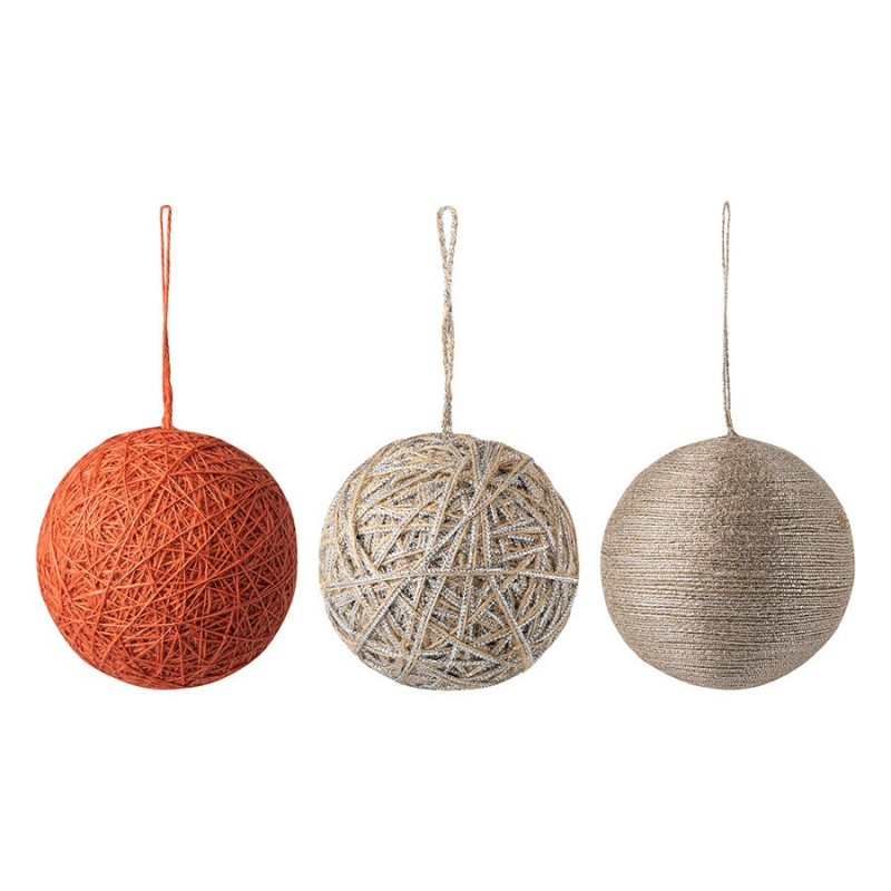 Ёлочные украшения Trendy из коллекции New Year Essential добавят в праздничный интерьер ощущение уюта и домашнего тепла. Милые шарики, похожие на клубочки пряжи, помогут перенестись в прошлое, напомнив о бабушкиных теплых свитерах, добрых улыбках и самых счастливых вечерах в кругу семьи.Особенности и преимущества:- Все предметы из набора имеют свой уникальный дизайн и великолепно дополняют друг друга. - Износостойкие материалы обеспечивают изделиям практичность и долгий срок службы. - Благодаря оптимальному диаметру эти шары хорошо заметны на ёлке, при этом не перегружают ее. - Украшения оснащены веревочками, что позволяет легко размещать их на еловых ветках и предметах интерьера.Материалы: полипропилен, полиэстер, хлопок, джут. Размеры: 10,2х10,2х10,2 см. Количество в наборе: 3 шт.