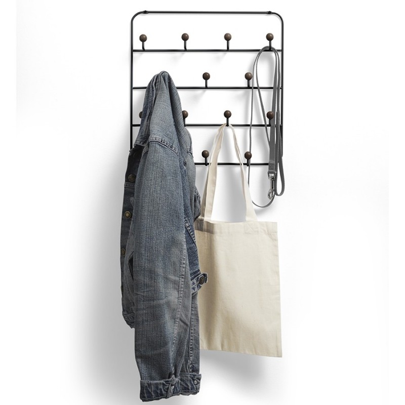 Органайзер Estique предоставит дополнительное пространство для хранения верхней одежды и аксессуаров. Его можно легко закрепить на стене или повесить на дверь с помощью специальных держателей. Органайзер оснащен 14 крючками с деревянными заглушками, которые защищают вещи от повреждений и растягивания, а также делают дизайн более привлекательным. Вешалка идеально подходит для дверей толщиной до 3,8 см.Материалы: сталь, бук. Размеры: 36х11х60 см. Цвет: черный/орех.Пыль и загрязнения с поверхностей можно удалять при помощи мягкого влажного материала. Запрещается использование абразивов и агрессивной бытовой химии.