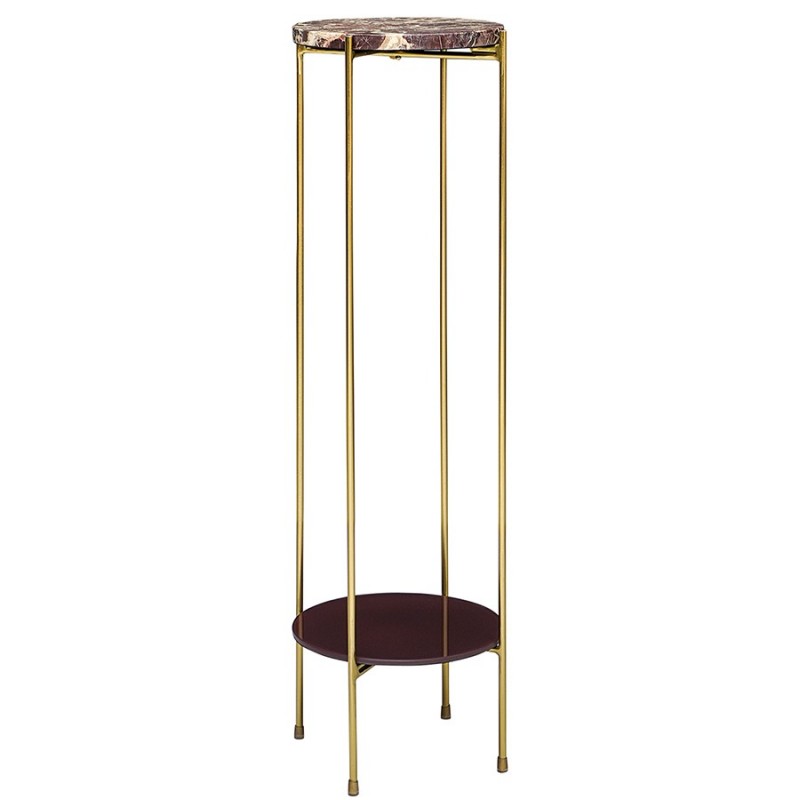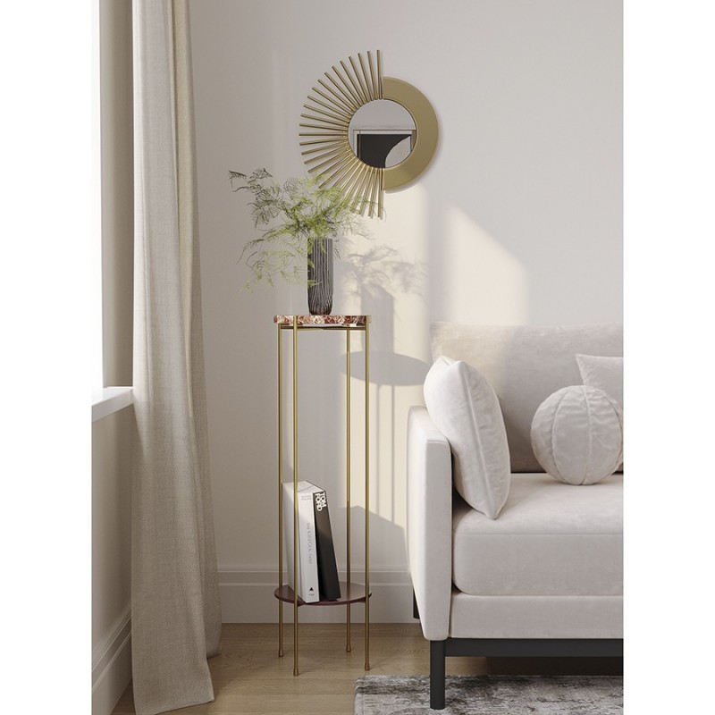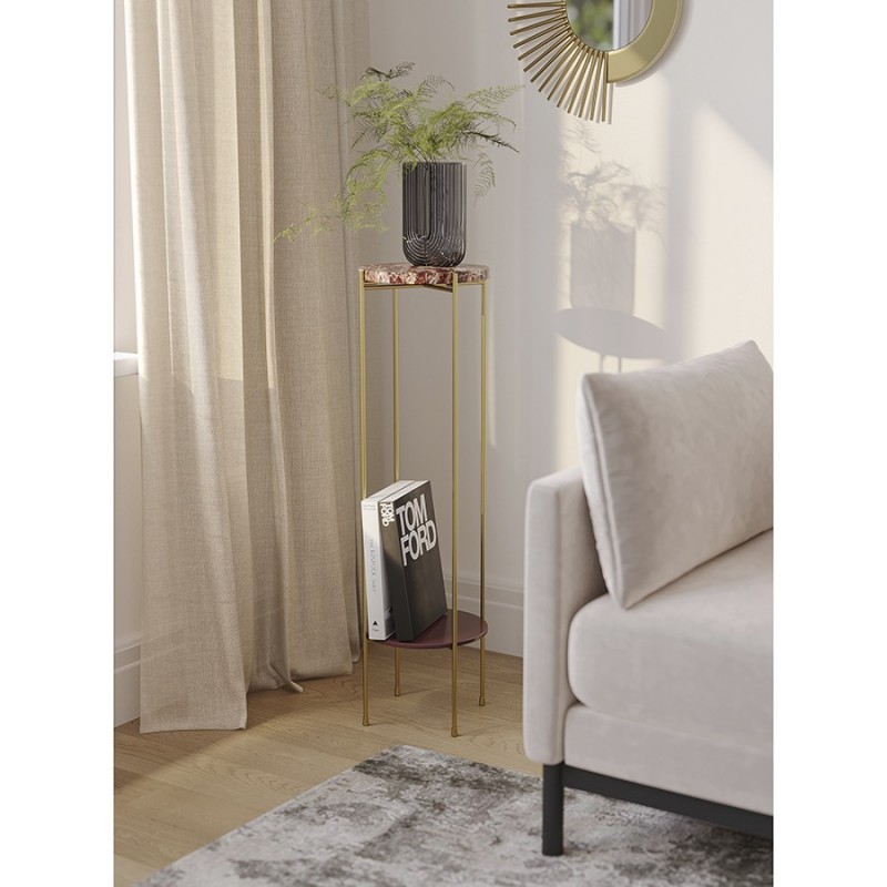 Подставка декоративная Ube от бренда Bergenson Bjorn сделает любой интерьер более комфортным и функциональным. На ней можно удобно разместить комнатные растения, декор и любые другие предметы. Дизайн актуален как для современных, так и классических стилей.Особенности и преимущества:- Сочетание мрамора, стекла и железа обеспечивает аксессуару презентабельный вид и высокую устойчивость к износу. - Материалы являются экологичными, практичными, долговечными, хорошо очищаются от загрязнений. - Благодаря компактности и небольшому весу аксессуар можно легко перемещать и устанавливать в любом удобном месте. - Наличие двух столешниц позволяет размещать больше предметов.! Обращаем ваше внимание, что этот предмет изготовлен вручную и может быть не идеален. Небольшие неровности, потертости и различия в цвете – это не брак, а индивидуальная особенность товара, произведенного ручным способом.Материал: железо, мрамор, стекло. Диаметр: 30 см. Высота: 100 см.Важно!Натуральный мрамор не обладает водоотталкивающим эффектом. Структура материала пористая, из-за чего он может впитывать жидкости и другие вещества. Чтобы защитить поверхность от пятен, ее можно обработать специальными защитными средствами (пропитки для мрамора).Как ухаживать за поверхностью из мрамора:1) Чтобы очистить поверхность из мрамора, протрите ее слегка влажной тканью, избегая длительного контакта с водой. Можно использовать мягкие чистящие жидкости, но не абразивные и не кислотные средства. 2) Образовавшиеся пятна можно очистить с помощью специальных средств для каменных поверхностей. 3) Защитная обработка: регулярно наносите защитный слой из пропитки для мрамора. Это позволит защитить поверхность и сделать ее более герметичной, устойчивой к появлению пятен. Можно использовать любую пропитку, которая подходит для натурального мрамора. 4) Использовать пропитку рекомендуется 1 раз в 6–12 месяцев, но не менее 1 раза в год, чтобы поддерживать ее защитный барьер от влаги, масел и грязи. Эта профилактическая мера помогает сохранить идеальный внешний вид камня и продлить срок его службы. 5) Постарайтесь избегать попадания масла и кислотных жидкостей на поверхность столешницы. Любую пролитую жидкость вытирайте насухо сразу же. 6) Во избежание появления новых пятен, используйте подставки под блюда, кружки, бокалы. 7) Не ставьте горячие и холодные емкости непосредственно на столешницу. 8) Не режьте на столешнице.