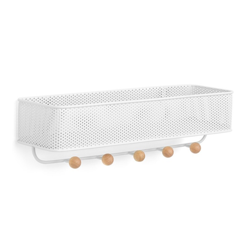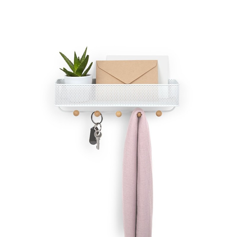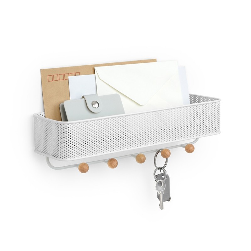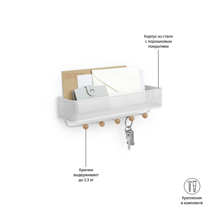 Органайзер обеспечивает дополнительное место для хранения и прекрасно подходит для размещения писем, ключей, квитанций или портмоне – тех мелочей, которые достаются из карманов и сумок по приходе домой и норовят потеряться.Настенный органайзер выполнен из перфорированного металла и натурального дерева. Пять крючков с круглыми деревянными наконечниками подойдут для ключей и аксессуаров. Сочетается по стилю с предметами из коллекции Promenade.Материал: сталь, бук, полиэстер. Размеры: 32х9х9 см.Пыль и загрязнения удалять при помощи мягкой влажной салфетки. Запрещается использование агрессивной бытовой химии и абразивных материалов.