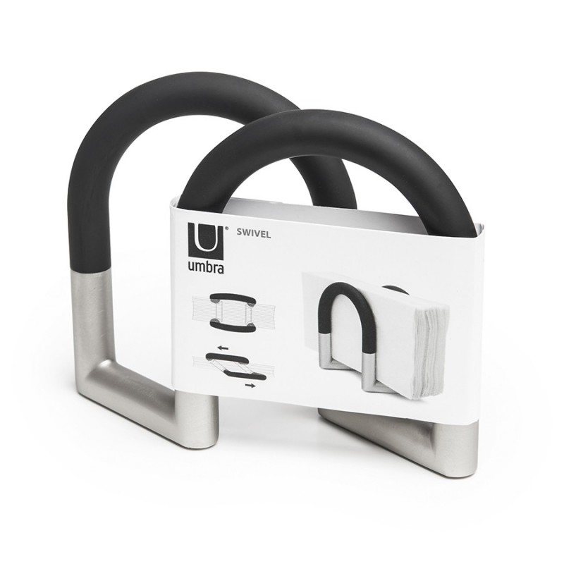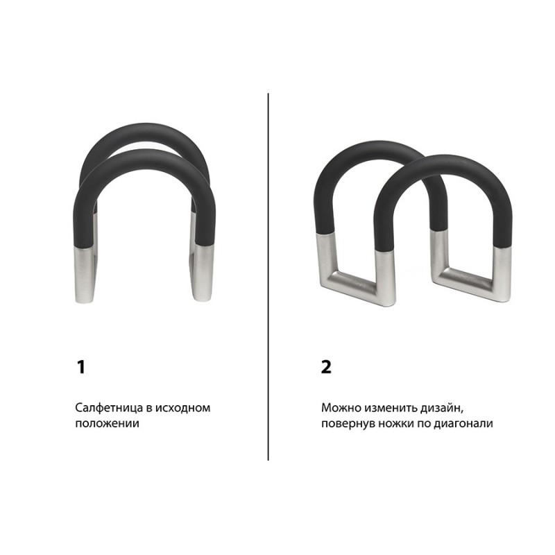 Стильный держатель для салфеток поможет навести порядок в обеденной зоне и украсит пространство.Подвижная рама позволяет регулировать глубину, и даже сделать держатель почти плоским, благодаря чему его удобно хранить и брать с собой на пикники. Верхняя часть сделана из приятного на ощупь пластика. Автор дизайна - Jordan Murphy.Материалы: цинк, АБС-пластик. Размеры: 10х7х11 см. Цвет: черный/никель.Пыль и загрязнения удалять при помощи мягкой влажной салфетки. Запрещается использование агрессивной бытовой химии и абразивных материалов.
