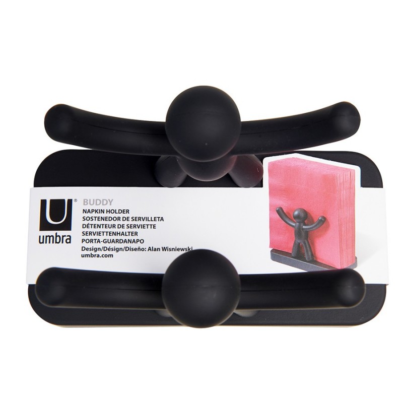 Два трогательных человека плотно держат половину стандартной пачки бумажных салфеток. Замечательное дополнение к продуктам из серии Buddy, например к держателю полотенец, заглушке для раковины и емкости для заваривания.Салфетница выполнена из матового АВС-пластика, за которым легко ухаживать.Материал: АБС-пластик, сталь. Размеры: 15х8х11 см.Пыль и загрязнения удалять при помощи мягкой влажной салфетки. Запрещается использование агрессивной бытовой химии и абразивных материалов.