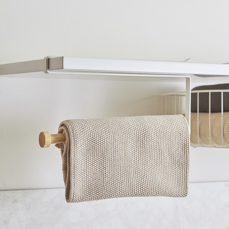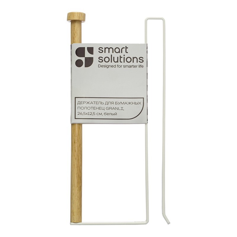 Главные достоинства держателя для бумажных полотенец Granli – простота установки, компактность и лаконичный дизайн, что делает его прекрасным приобретением для любой современной кухни.Особенности и преимущества:- Быстро и просто крепится на полке или дверце кухонного гарнитура, не требуя сверления стен. - Совместим с рулонами любого размера, имеет специальную конструкцию, которая исключает их сползание. - Сочетание металла и бамбука обеспечивает аксессуару практичность и отлично интегрируется в современные интерьерные решения.Материал: железо, бамбук. Размеры: 26,5х2,5х12,5 см. Максимальная нагрузка: 1 кг. Максимальная толщина поверхности для крепления держателя в пределах 2 см. Цвет: белый.Пыль и загрязнения с поверхностей можно удалять при помощи мягкого влажного материала. После очищения держатель рекомендуется вытереть сухой тканью.