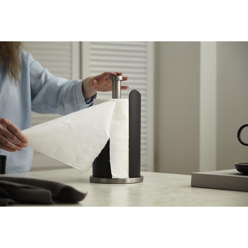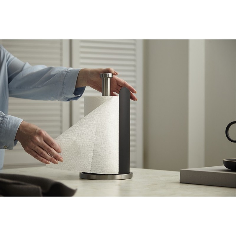 Держатель для бумажных полотенец Riks от Smart Solutions поможет в поддержании порядка и чистоты на кухне. Благодаря специальному дизайну рулон скрыт внутри, что обеспечивает аксессуару эстетичный вид.Особенности и преимущества:- Корпус из углеродистой стали не боится коррозии и повреждений, имеет специальное покрытие против отпечатков пальцев. - Специальная конструкция предотвращает произвольное разматывание рулона и позволяет оторвать салфетку нужного размера даже одной рукой. - Держатель компактный, имеет устойчивое основание, что дает возможность размещать его в любом удобном месте.Материалы: углеродистая сталь с порошковым покрытием, нержавеющая сталь. Диаметр поддона: 15,6 см. Диаметр колбы: 13 см. Высота с поддоном: 30,5 см. Высота без поддона: 27,5 см. Цвет: графит.От пыли и загрязнений держатель можно очищать мягким влажным материалом. Запрещается использование абразивов и агрессивной бытовой химии.