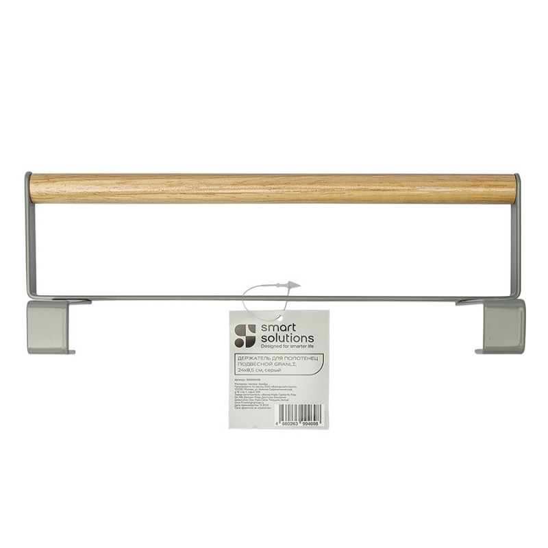 Главные достоинства держателя для полотенец Granli – простота установки, компактность и лаконичный дизайн, что делает его прекрасным приобретением для любой современной кухни.Особенности и преимущества:- Быстро и просто крепится к дверце кухонного гарнитура, не требуя сверления стен. - Не занимает много места, обеспечивая компактное хранение полотенец. - Сочетание металла и бамбука гарантирует аксессуару практичность и отлично интегрируется в современные интерьерные решения.Материал: железо, бамбук. Размеры: 24х7х8,5 см. Максимальная нагрузка: 1,5 кг. Максимальная толщина поверхности для крепления держателя в пределах 2 см. Цвет: серый.Пыль и загрязнения с поверхностей можно удалять при помощи мягкого влажного материала. После очищения держатель рекомендуется вытереть сухой тканью.