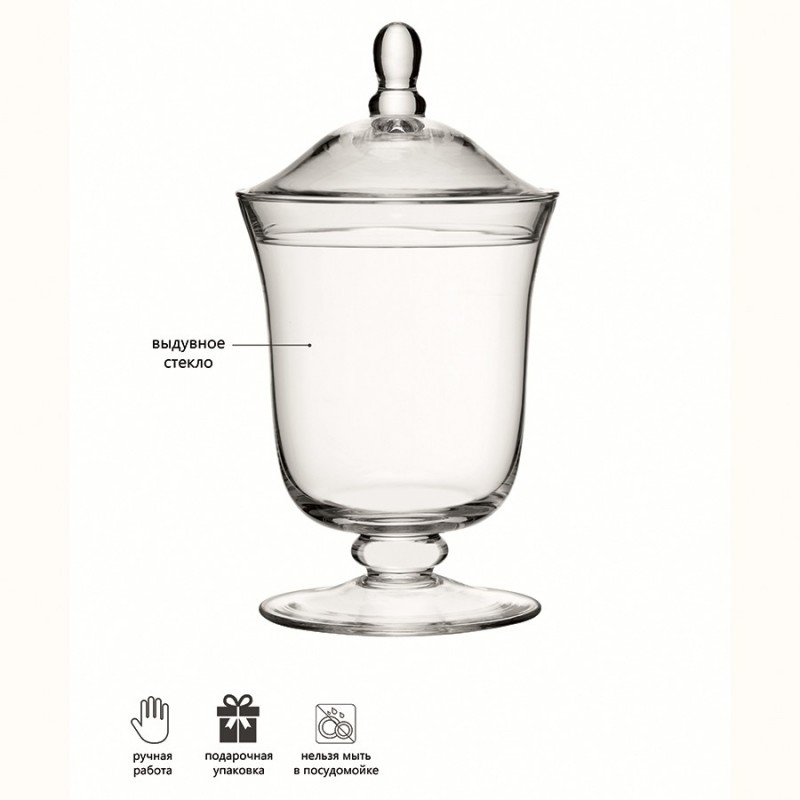 Бонбоньерка из выдувного стекла Serve – не просто красивый, но и функциональный элемент сервировки. Такой необычный аксессуар добавит в интерьер кухни особый шарм, позволит красиво хранить и подавать к столу конфеты и другие сладости.Serve — это элегантные формы, подчеркнутые кристальным блеском стекла ручной работы. Предметы коллекции подходят для сервировки в различных стилях. Линейка придется по душе всем, кто любит красивую и практичную посуду.Важно! Поскольку изделие изготавливается вручную, его размеры могут незначительно отличаться и допускается наличие пузырьков в толще стекла: круглые < 3 мм, овальные < 5 мм и их небольшие скопления в виде пены. Также возможно наличие прожилок (видимых нитей) на стекле менее 50% длины окружности любого предмета. Все это не брак, а допустимые индивидуальные особенности товара, произведенного ручным способом.Материалы: выдувное стекло. Высота: 25 см. Ширина: 14 см.Рекомендуется мыть вручную в теплой мыльной воде и вытирать насухо мягкой тканью.