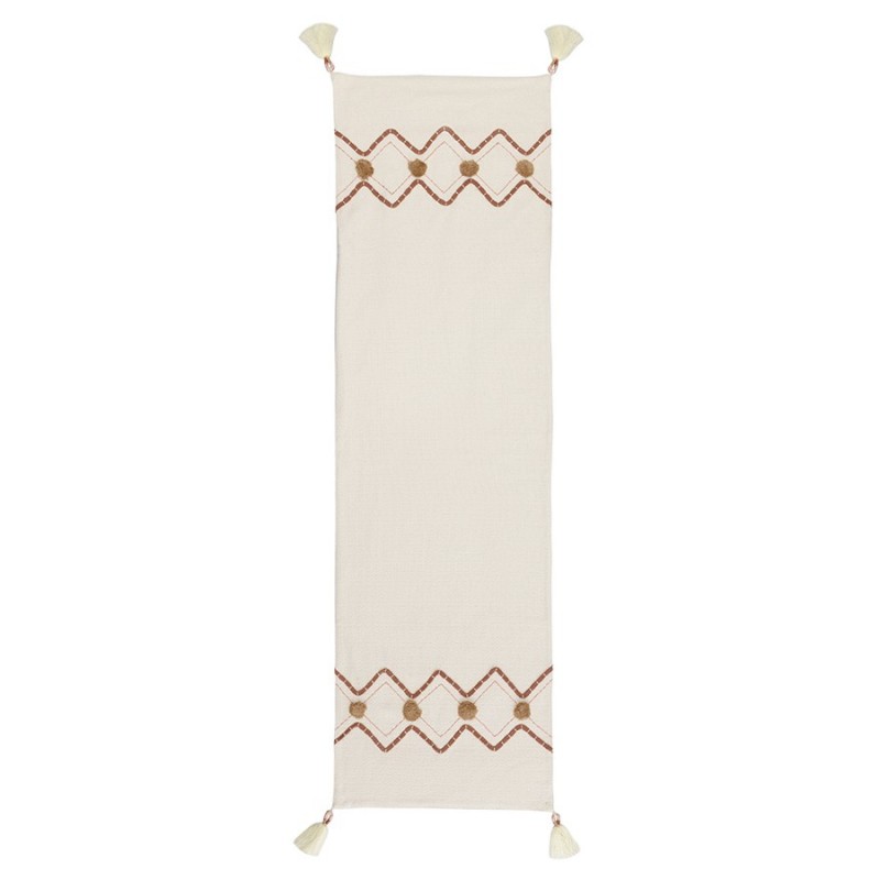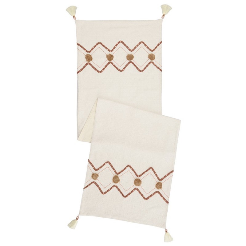 Дорожка на стол Geometry из коллекции Ethnic – оригинальный текстильный аксессуар, который привнесет в сервировку колоритные этнические нотки и превратит вашу кухню или столовую в уютное и стильное пространство.Особенности и преимущества:- Выполнена из экологичного, устойчивого к износу и деформации 100% хлопка. - Идеально подходит для повседневной и праздничной сервировки, может использоваться для обозначения мест при рассадке гостей. - Благодаря дизайну в этно-стиле с элементами в виде вышивки и кисточек привносит в интерьер интересный акцент. - Позволяет защитить поверхность стола от воздействия горячих температур, царапин и пятен.Основной материал: 100% хлопок. Материал декоративных элементов: хлопок-полиэстер. Размеры: 45х150 см.! Стирка запрещена ! Гладить запрещено ! Барабанная сушка запрещена ! Не отбеливать ! Возможна сухая чистка