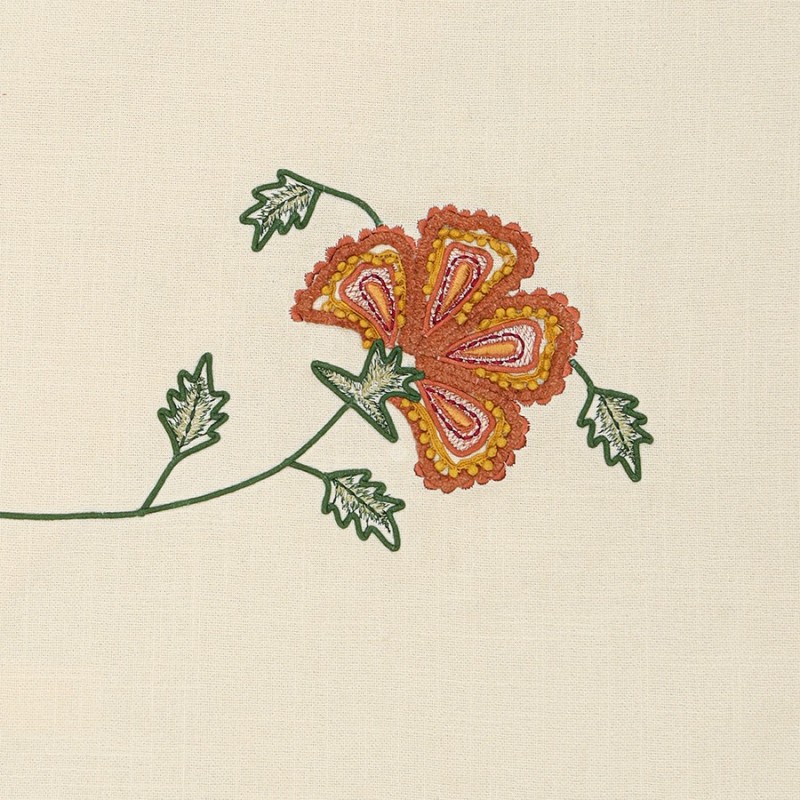 Дорожка на стол Spring flower из коллекции Ethnic – простой способ создать в интерьере уютную атмосферу и “оживить” сервировку. Цветочные мотивы вызывают приятные эмоции, делают пространство более привлекательным и гармоничным.Особенности и преимущества:- Выполнена из экологичного, устойчивого к износу и деформации 100% хлопка. - Идеально подходит для повседневной и праздничной сервировки. - Позволяет защитить поверхность стола от воздействия горячих температур, царапин и пятен. - Может использоваться для зонирования пространства и обозначения мест при рассадке гостей.Основной материал: 100% хлопок. Декоративные элементы: 100% полиэстер. Размеры: 45х150 см.! Стирка запрещена ! Гладить запрещено ! Барабанная сушка запрещена ! Не отбеливать ! Возможна сухая чистка
