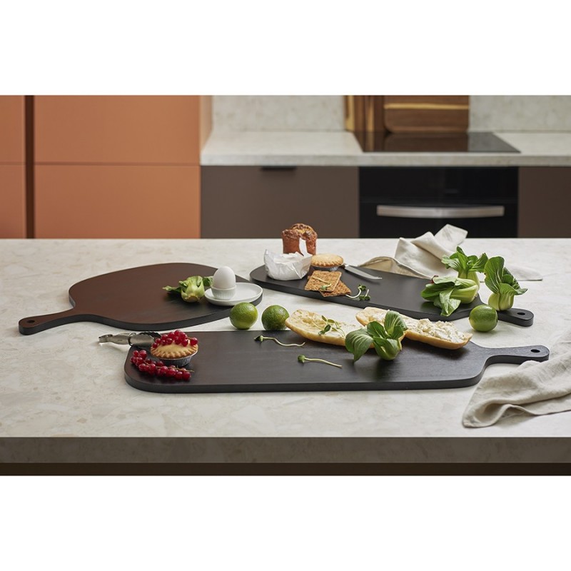 Доска сервировочная Rubris – прекрасный вариант для эффектной подачи к столу всевозможных закусок и нарезок. Благодаря натуральному дизайну она великолепно вписывается в любую сервировку и идеально подходит для создания на кухне комфортной и уютной атмосферы.Особенности и преимущества:- Изготовлена из натурального материала, который не выделяет вредных веществ при контакте с пищевыми продуктами. - Благодаря высокой прочности и устойчивости каучукового дерева к воздействию влаги идеально подходит для использования на кухне. - За счет лаконичного дизайна и естественной цветовой гаммы легко вписывается в различные варианты сервировки и любые интерьерные решения. - Имеет специальное отверстие для компактного хранения на настенных держателях.Материал: каучуковое дерево. Размеры: 35х48 см. Цвет: черный.Доску рекомендуется мыть вручную при помощи мягкой губки. После очищения ее необходимо хорошо просушить и только потом использовать. Запрещается применение абразивов и агрессивной бытовой химии.