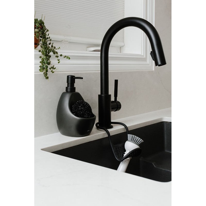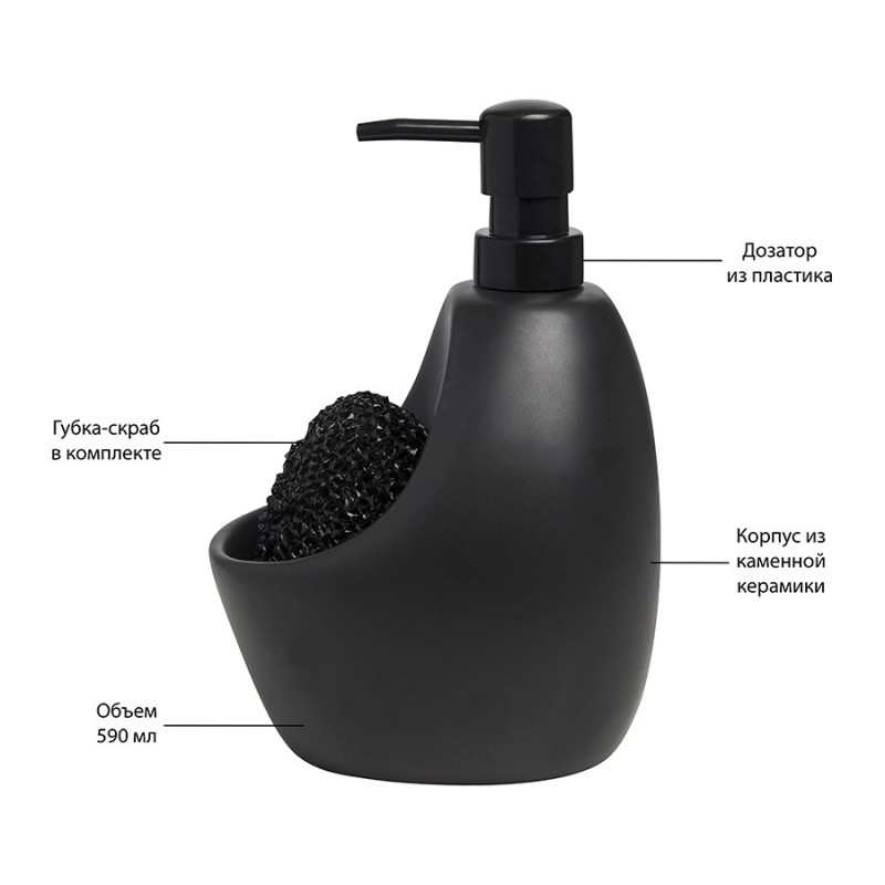 Диспенсер Joey поможет навести порядок в зоне раковины и облегчит процесс мытья посуды. Выполненный из керамики, он не только практичный и долговечный, но и стильно смотрится в интерьере. Объем 590 мл обеспечивает длительное использование без необходимости дозаправки. Моющее средство дозируется экономно через удобный длинный носик. В конструкции предусмотрено отделение для губки, которая входит в комплект.Материалы: керамика, ABS-пластик, полипропилен. Размеры: 10х13х20 см. Объем: 590 мл. Цвет: черный. Дизайнер: Sativa Turner.Можно мыть в теплой мыльной воде с помощью мягкой губки. Запрещается использование абразивов и агрессивной бытовой химии.