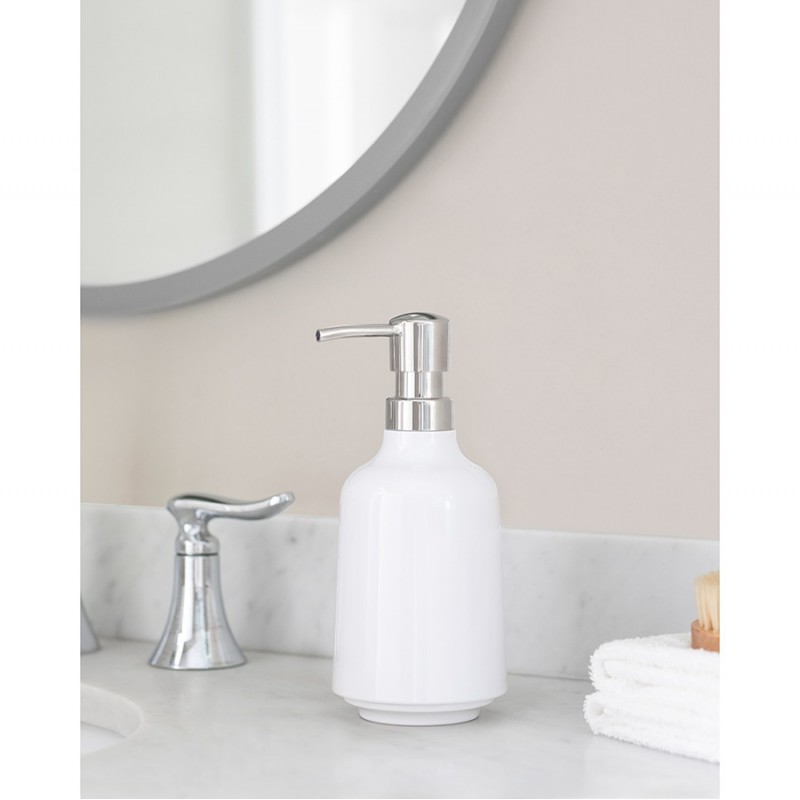 Диспенсер можно использовать для экономии жидкого мыла в ванной или моющего средства на кухне.Изделие выполнено из высокопрочного материала – меламина. Диспенсер имеет широкое отверстие для заправки мыла.
