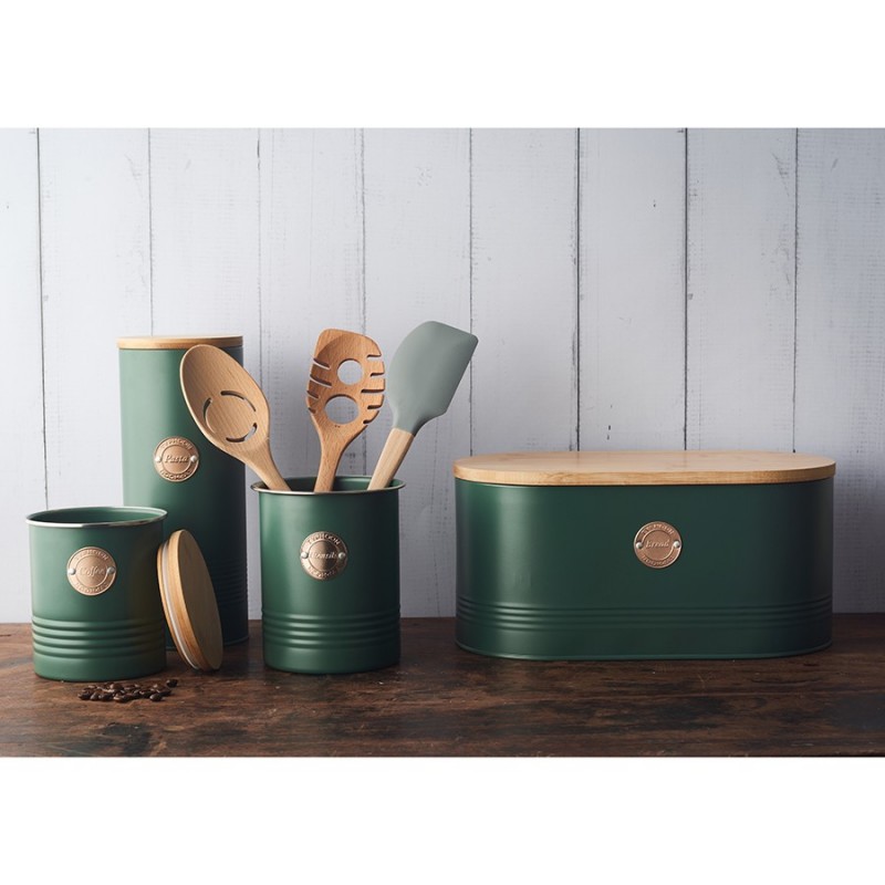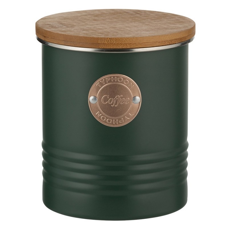 Банка для кофе Living – удачное сочетание качества, практичности и стильного дизайна. Емкость для хранения выполнена из углеродистой стали, покрытой экологичной и устойчивой к царапинам краской. Материал обладает высокой прочностью, отличными антикоррозионными свойствами, не подвержен деформации. Плотно прилегающая крышка из бамбука с силиконовым ободком защищает содержимое от заветривания и попадания влаги.Коллекция кухонных аксессуаров Living – простой способ навести порядок на кухне и сделать акцент на стильном оформлении интерьера.Материалы: углеродистая сталь, бамбук, силикон. Объем: 1 л. Цвет: зеленый.Перед использованием емкость рекомендуется хорошо вымыть вручную. Пыль и загрязнения удалять при помощи мягкой влажной ткани. Запрещается использование абразивных материалов и агрессивной бытовой химии.