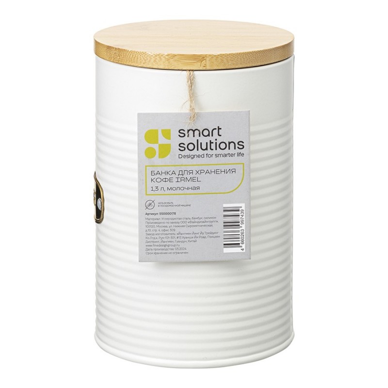 Банка для хранения кофе Irmel от бренда Smart Solutions станет прекрасным дополнением современного кухонного интерьера. Ее дизайн органично вписывается в различные стилевые решения: минимализм, лофт, фьюжн, эклектика, афро, сканди и другие.Особенности и преимущества:- Использование в изготовлении углеродистой стали увеличенной толщины гарантирует емкости отличные эксплуатационные характеристики – устойчивость к повреждениям, износу и простой уход. - Порошковое покрытие защищает металлическую поверхность от коррозии и обеспечивает изделию дополнительную прочность. - Крышка из бамбука имеет увеличенную толщину и силиконовый уплотнитель, благодаря чему плотно прилегает, исключая попадание внутрь банки пыли и влаги.Материалы: углеродистая сталь, бамбук, силикон. Размеры: 12,5х12,5х17 см. Объем: 1,3 л. Цвет: молочный.Загрязнения рекомендуется удалять при помощи мягкого влажного материала. После очищения банку необходимо вытереть насухо. Запрещается мытье в посудомоечной машине, использование абразивов и агрессивной бытовой химии.