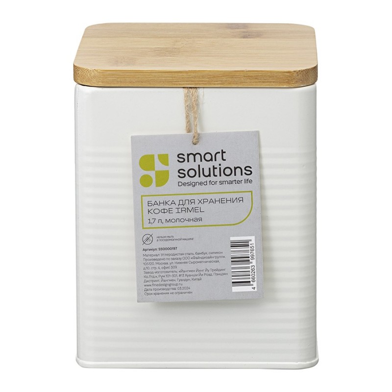 Банка для хранения кофе Irmel от бренда Smart Solutions станет прекрасным дополнением современного кухонного интерьера. Ее дизайн органично вписывается в различные стилевые решения: минимализм, лофт, фьюжн, эклектика, афро, сканди и другие.Особенности и преимущества:- Использование в изготовлении углеродистой стали увеличенной толщины гарантирует емкости отличные эксплуатационные характеристики – устойчивость к повреждениям, износу и простой уход. - Порошковое покрытие защищает металлическую поверхность от коррозии и обеспечивает изделию дополнительную прочность. - Крышка из бамбука имеет увеличенную толщину и силиконовый уплотнитель, благодаря чему плотно прилегает, исключая попадание внутрь банки пыли и влаги.Материалы: углеродистая сталь, бамбук, силикон. Размеры: 11,7х11,7х14,5 см. Объем: 1,7 л. Цвет: молочный.Загрязнения рекомендуется удалять при помощи мягкого влажного материала. После очищения банку необходимо вытереть насухо. Запрещается мытье в посудомоечной машине, использование абразивов и агрессивной бытовой химии.