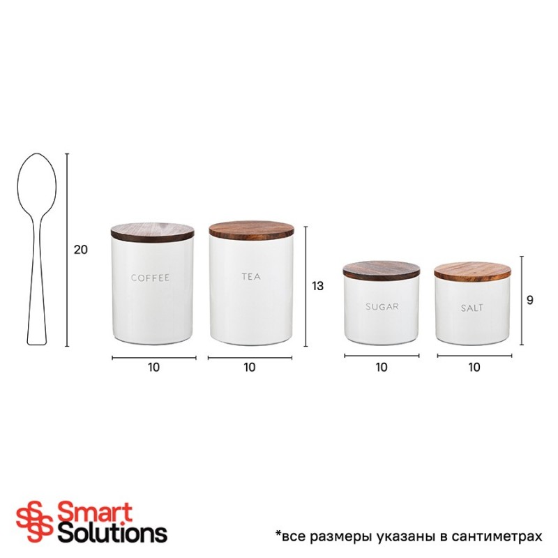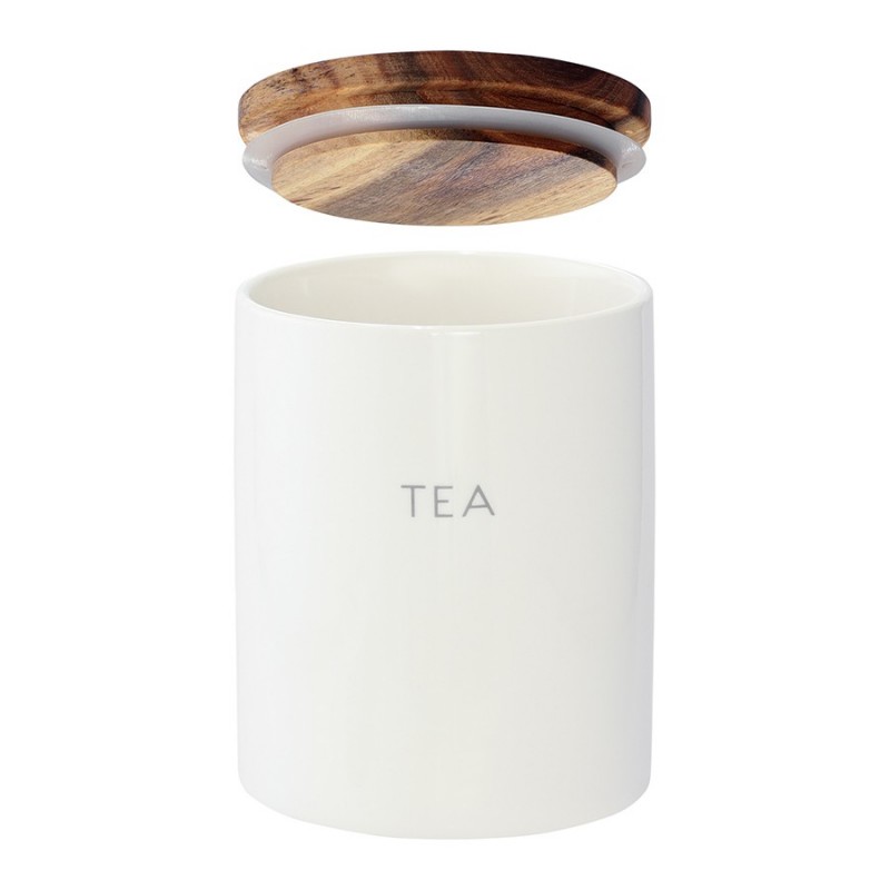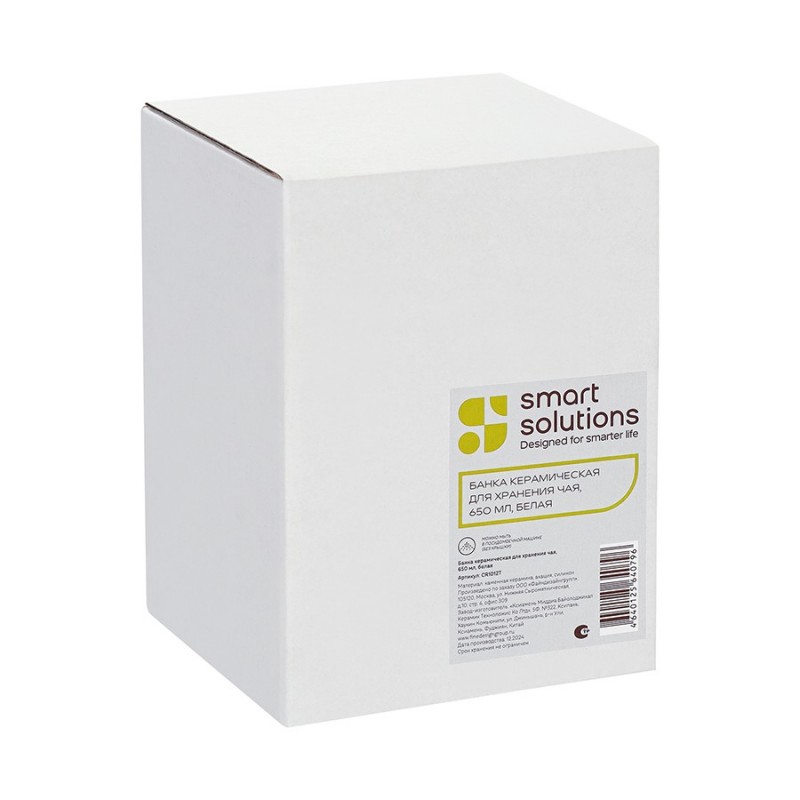 Банка от бренда Smart Solutions поможет навести порядок на кухне и обеспечит удобное хранение чая.Особенности и преимущества:- Каменная керамика отличается прочностью, устойчивостью к износу, не боится потускнения, царапин и пятен. - Материал не впитывает загрязнения, не меняет вкус, запах продуктов и не требует сложного ухода. - Крышка изготовлена из натуральной древесины акации с отличными эксплуатационными свойствами и дополнена силиконовой вставкой для плотного закрывания. - На дне банки предусмотрена силиконовая накладка, которая препятствует скольжению.Материалы: каменная керамика, акация, силикон. Размеры: 10х10х13 см. Объем: 650 мл. Цвет: белый.Емкость из керамики можно мыть вручную и в посудомоечной машине. Крышку от загрязнений рекомендуется очищать с помощью влажной ткани.