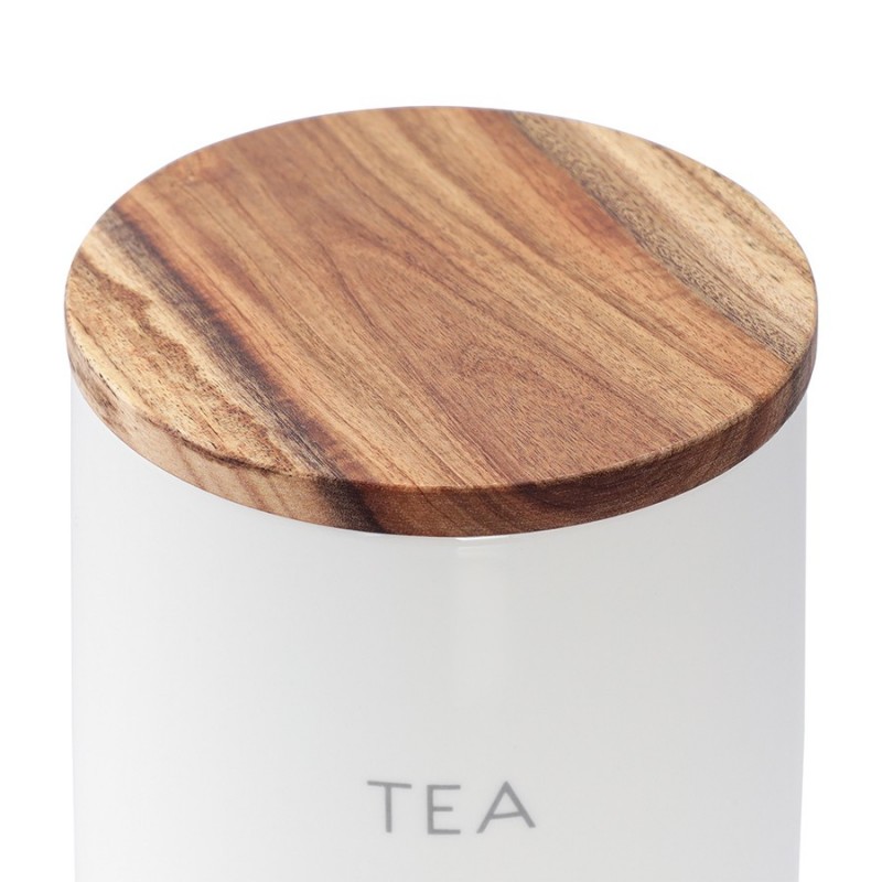 Банка от бренда Smart Solutions поможет навести порядок на кухне и обеспечит удобное хранение чая.Особенности и преимущества:- Каменная керамика отличается прочностью, устойчивостью к износу, не боится потускнения, царапин и пятен. - Материал не впитывает загрязнения, не меняет вкус, запах продуктов и не требует сложного ухода. - Крышка изготовлена из натуральной древесины акации с отличными эксплуатационными свойствами и дополнена силиконовой вставкой для плотного закрывания. - На дне банки предусмотрена силиконовая накладка, которая препятствует скольжению.Материалы: каменная керамика, акация, силикон. Размеры: 10х10х13 см. Объем: 650 мл. Цвет: белый.Емкость из керамики можно мыть вручную и в посудомоечной машине. Крышку от загрязнений рекомендуется очищать с помощью влажной ткани.