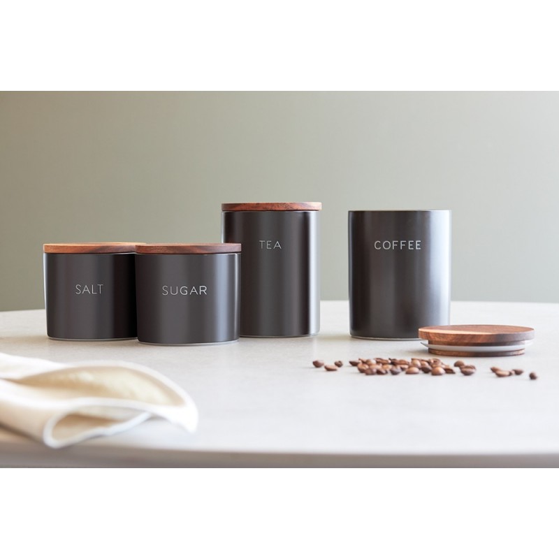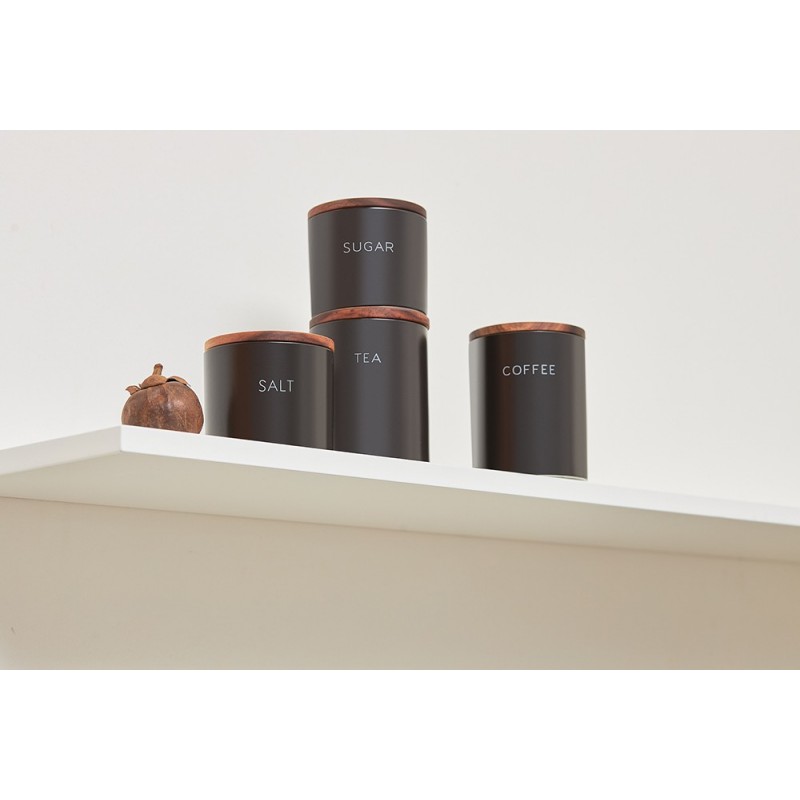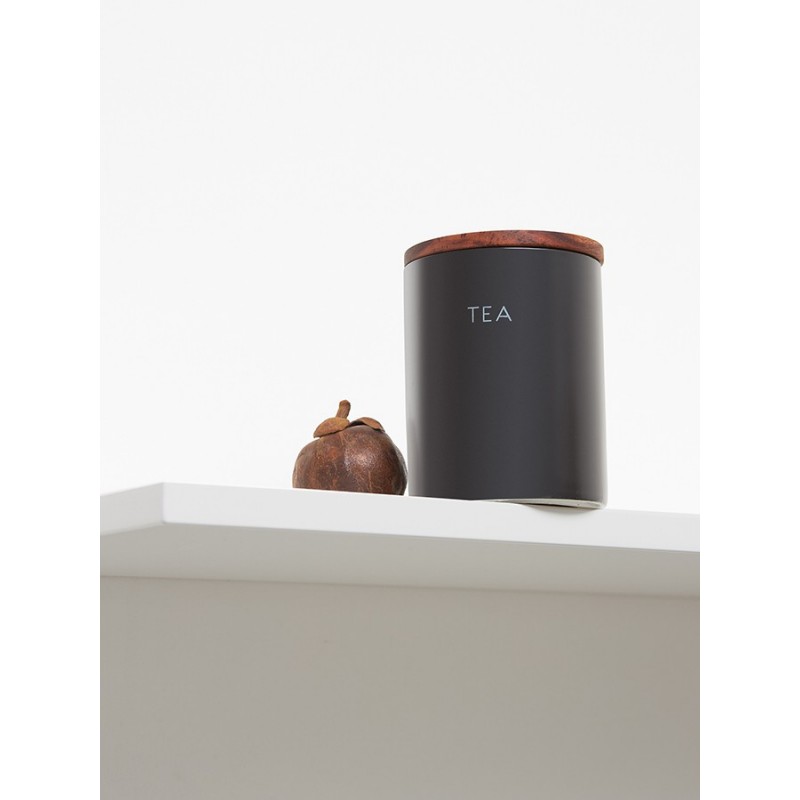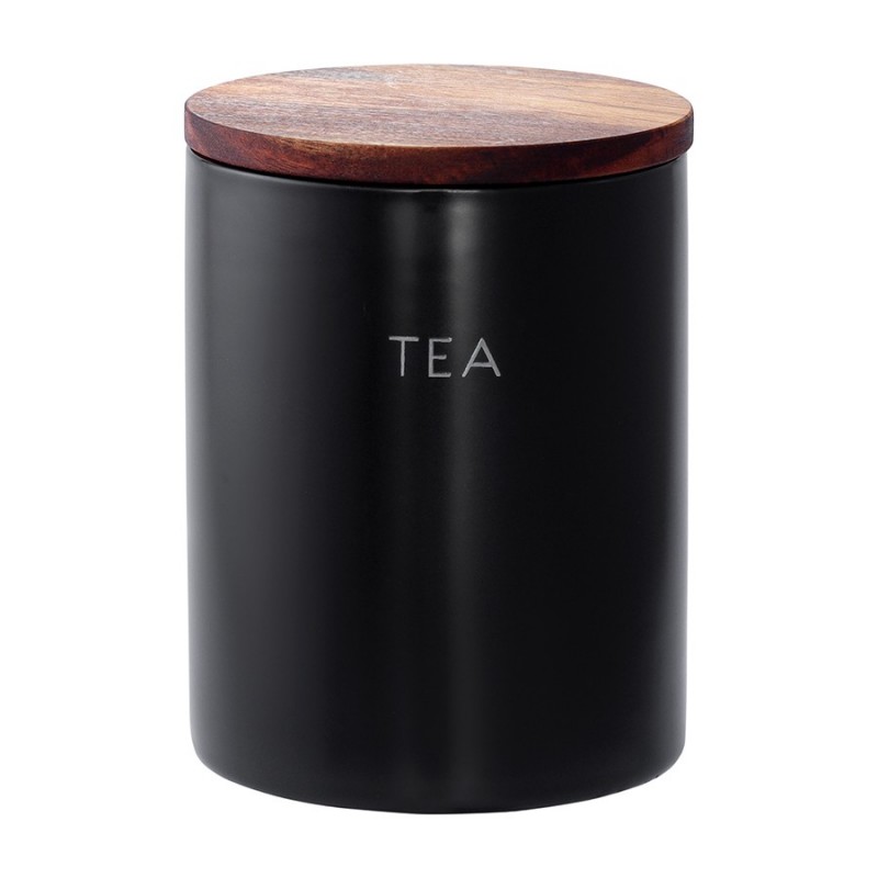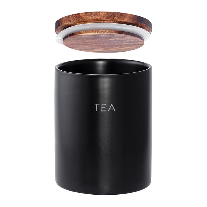 Банка от бренда Smart Solutions поможет навести порядок на кухне и обеспечит удобное хранение чая.Особенности и преимущества:- Каменная керамика отличается прочностью, устойчивостью к износу, не боится потускнения, царапин и пятен. - Материал не впитывает загрязнения, не меняет вкус, запах продуктов и не требует сложного ухода. - Крышка изготовлена из натуральной древесины акации с отличными эксплуатационными свойствами и дополнена силиконовой вставкой для плотного закрывания. - На дне банки предусмотрена силиконовая накладка, которая препятствует скольжению.Материалы: каменная керамика, акация, силикон. Размеры: 10х10х13 см. Объем: 650 мл. Цвет: черный.Емкость из керамики можно мыть вручную и в посудомоечной машине. Крышку от загрязнений рекомендуется очищать с помощью влажной ткани.