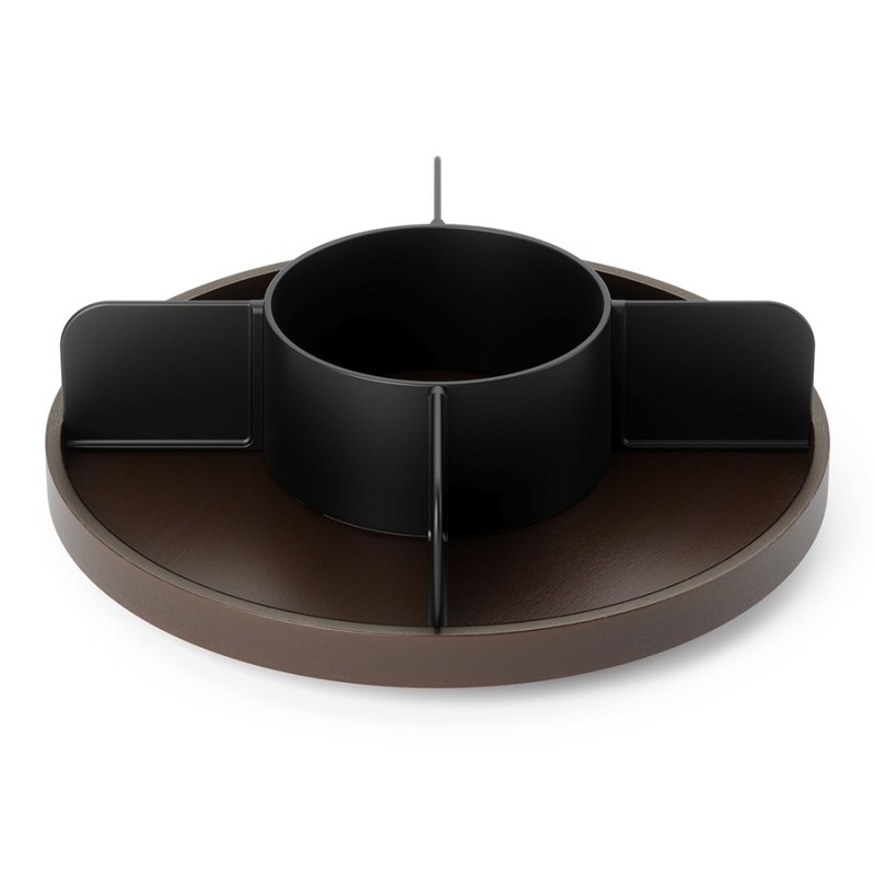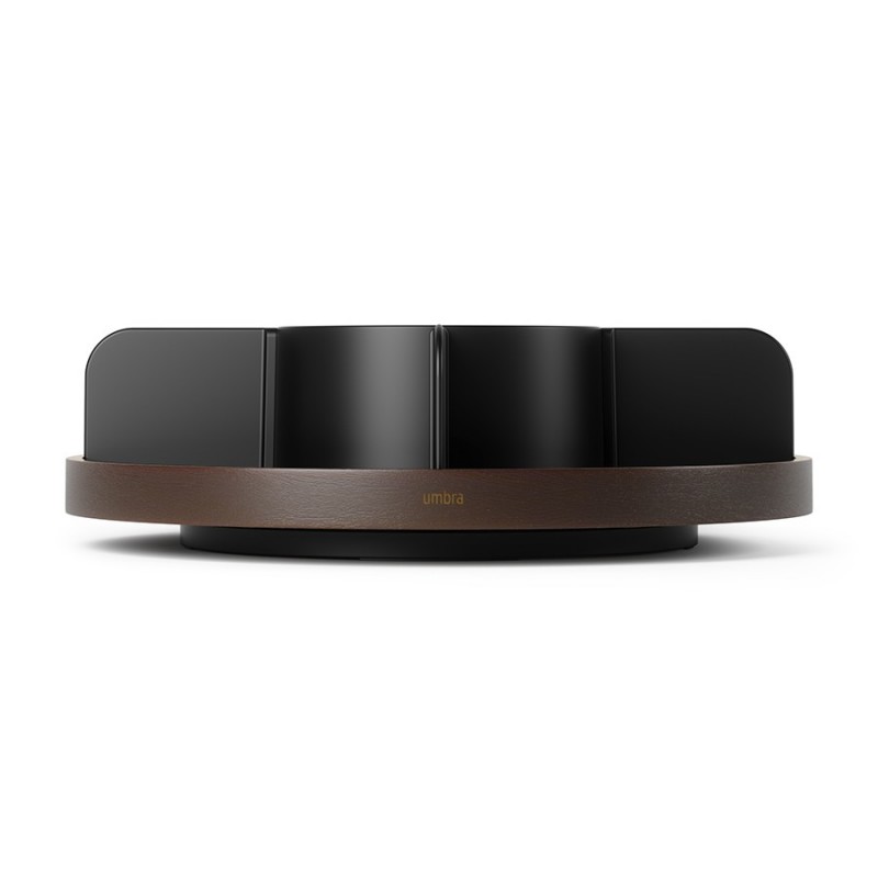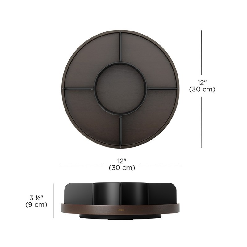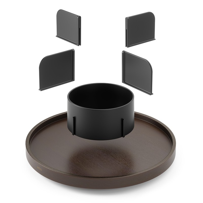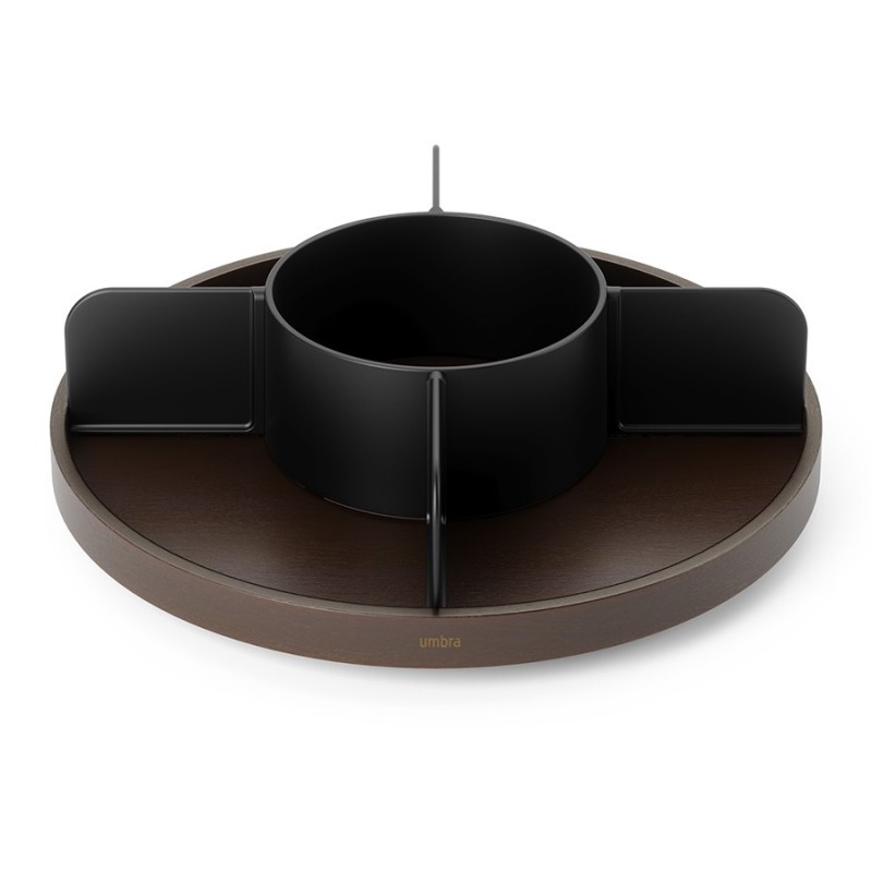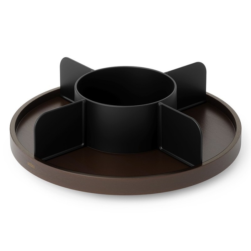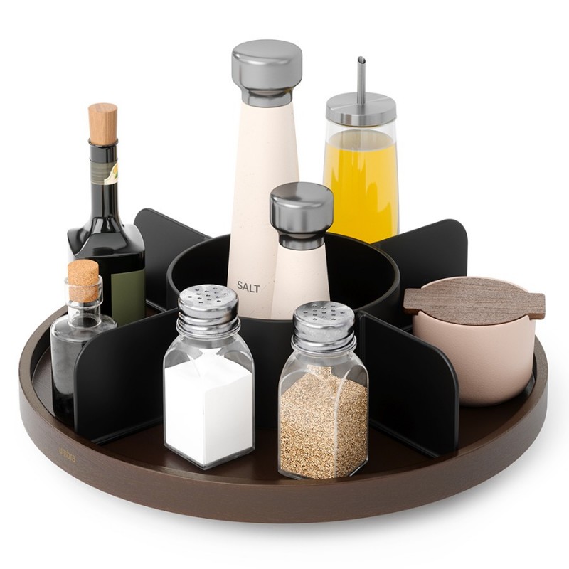 Органайзер Bellwood поможет организовать компактное хранение специй на полке или столешнице, а также обеспечить быстрый доступ к любой приправе за счет вращающейся конструкции. Органайзер имеет пять отделений, что делает его вместительным и позволяет раздельно хранить различные продукты: банки со специями, бутылки с маслом, уксусом, соусом и многое другое. Сочетание дерева и пластика подходит для различных интерьерных решений и гарантирует изделию устойчивость к износу и долгий срок службы.Материалы: тополь, переработанный АБС-пластик, бук, сталь, силикон. Размеры: 30х30х9 см. Цвет: черный/орех.Пыль и загрязнения с поверхностей можно удалять при помощи мягкого влажного материала. Запрещается использование абразивов и агрессивной бытовой химии.