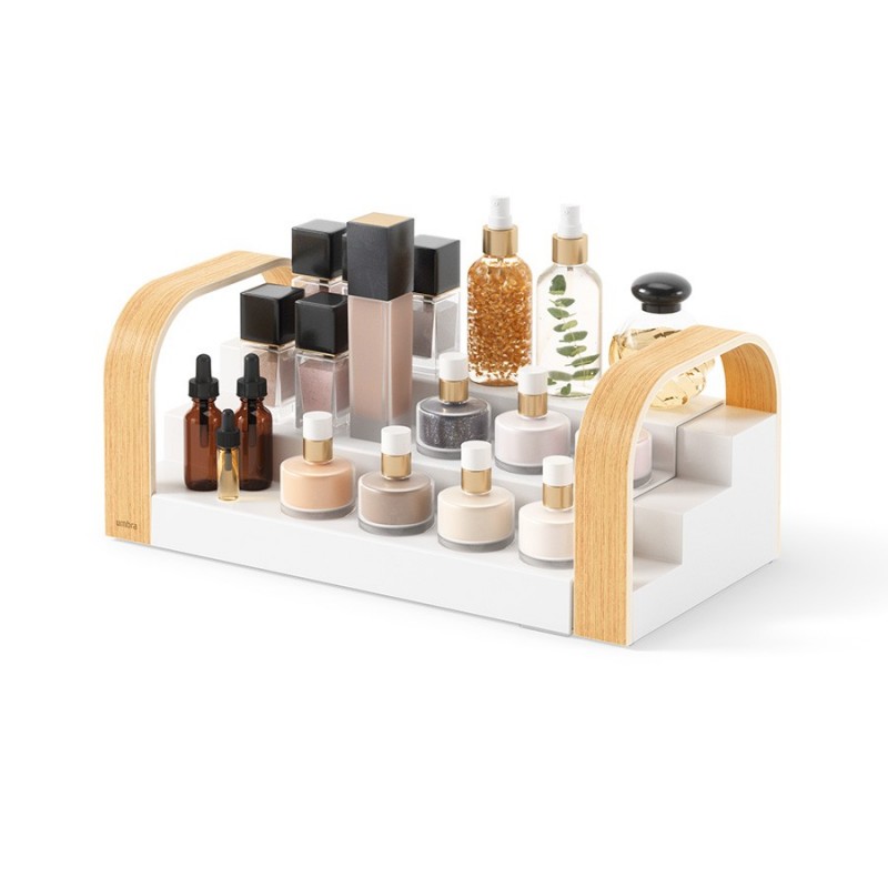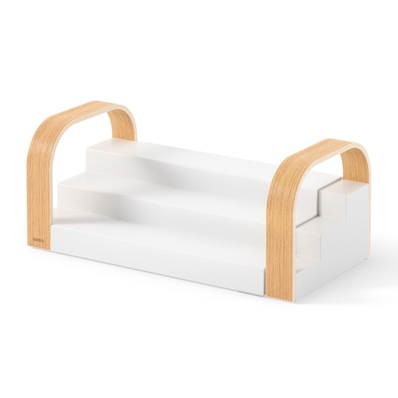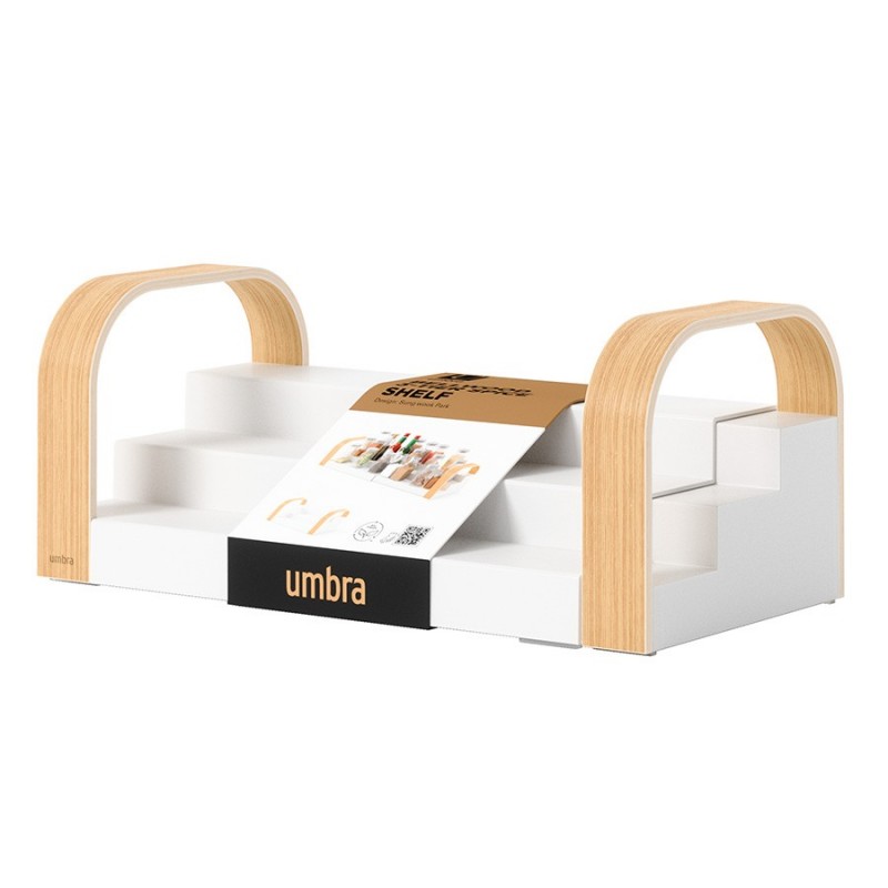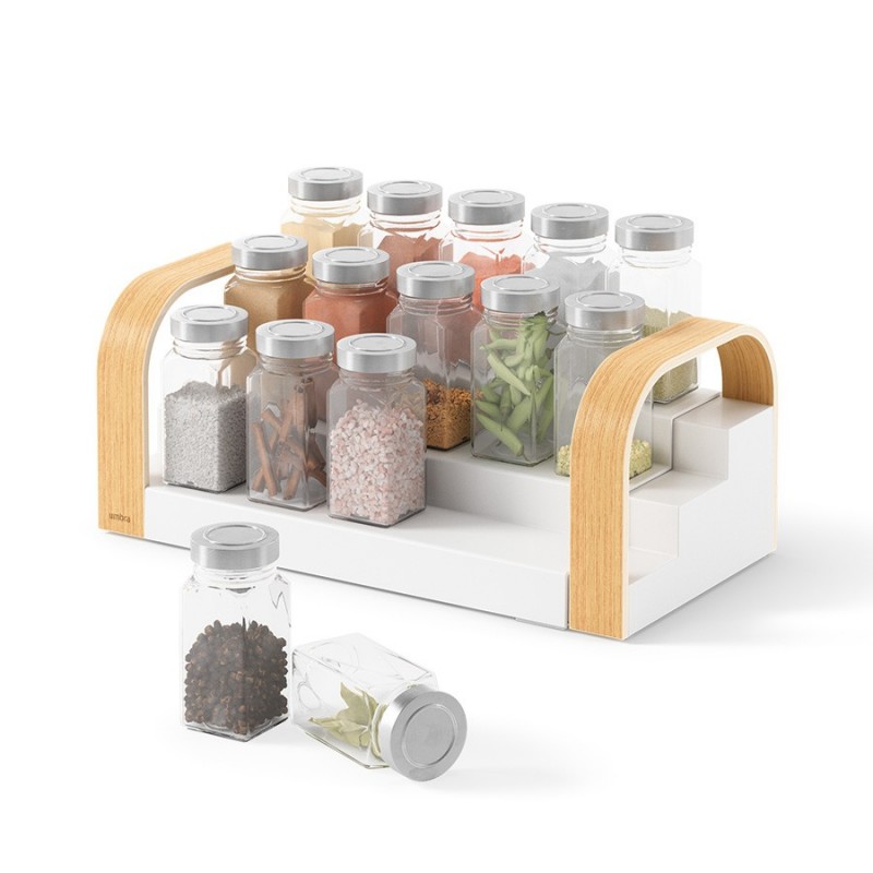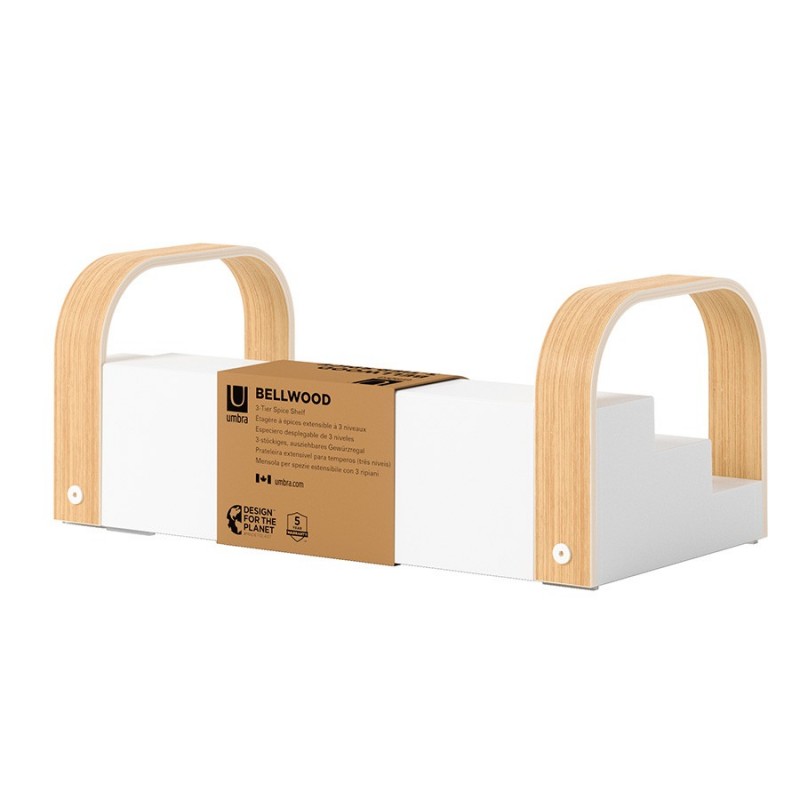 Полка для специй трехъярусная раздвижная bellwood, белая/натуральное дерево (артикул 2858)