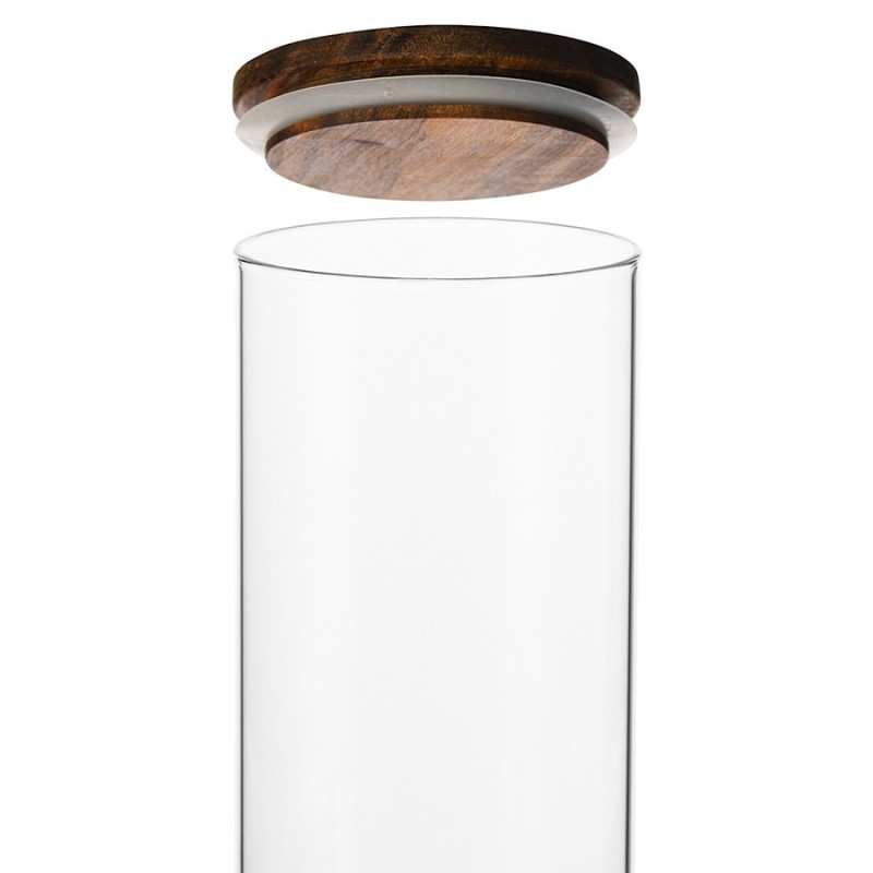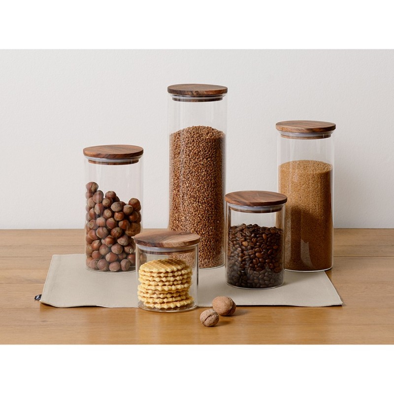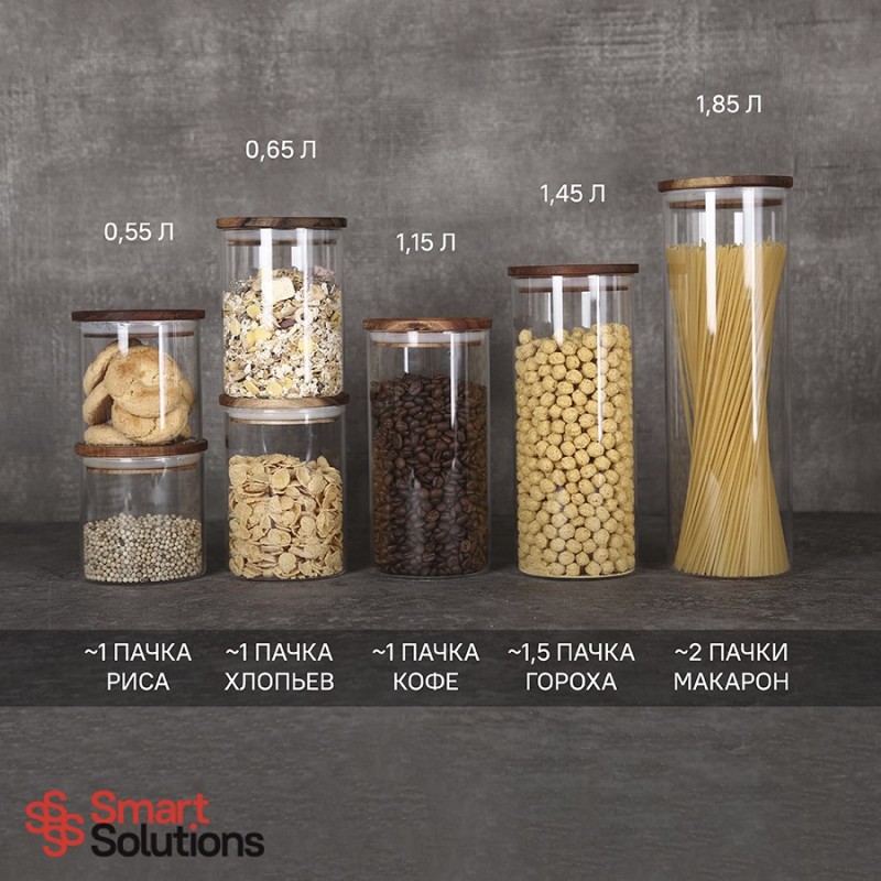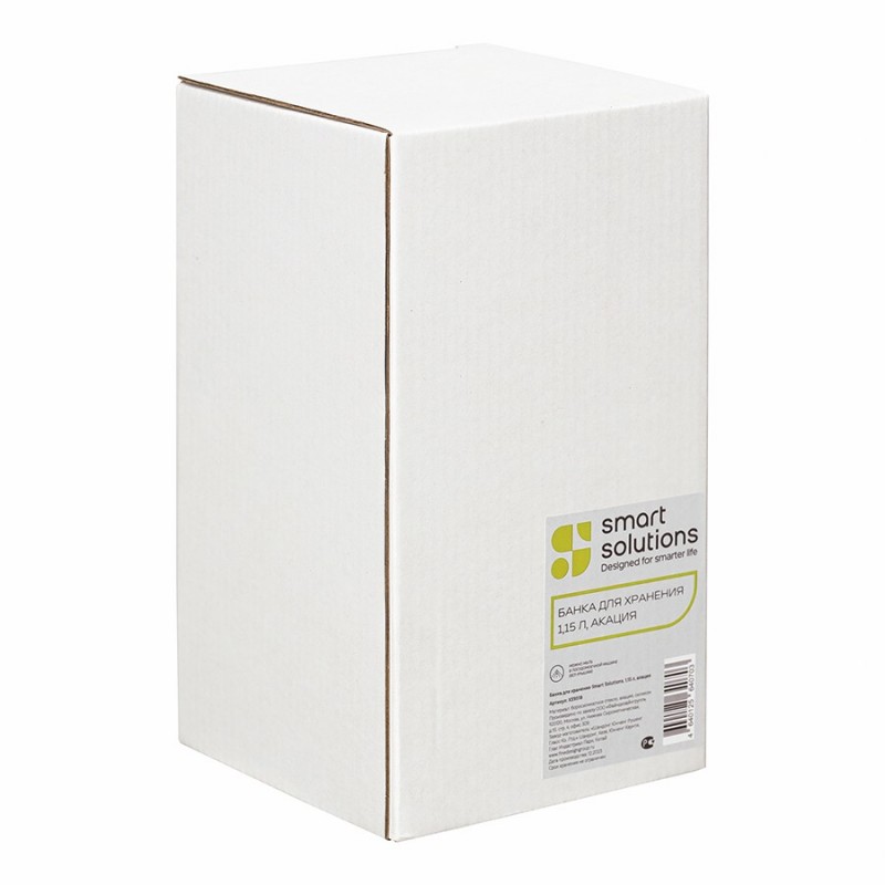 Банка для хранения от бренда Smart Solutions поможет организовать порядок на кухне и будет органично смотреться в интерьере с современным дизайном.Особенности и преимущества:- Емкость из боросиликатного стекла отличается высокой прочностью и устойчивостью к температурным воздействиям. - Крышка выполнена из акации – благородной породы древесины с эффектным внешним видом и отличными эксплуатационными свойствами. - Наличие специальной силиконовой вставки обеспечивает плотное закрывание, защищая содержимое от заветривания и попадания влаги.Материалы: боросиликатное стекло, акация, силикон. Размеры: 10х10х19,6 см. Объем: 1,15 л.Банку можно мыть в посудомоечной машине. Крышку рекомендуется протирать влажной тканью.