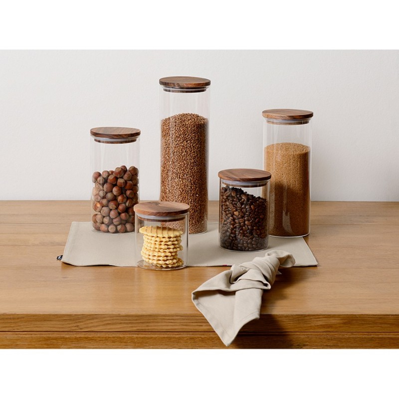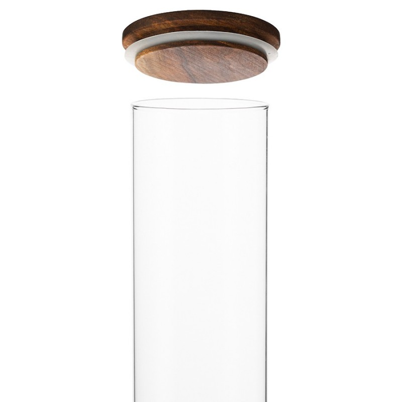 Банка для хранения от бренда Smart Solutions поможет организовать порядок на кухне и будет органично смотреться в интерьере с современным дизайном.Особенности и преимущества:- Емкость из боросиликатного стекла отличается высокой прочностью и устойчивостью к температурным воздействиям. - Крышка выполнена из акации – благородной породы древесины с эффектным внешним видом и отличными эксплуатационными свойствами. - Наличие специальной силиконовой вставки обеспечивает плотное закрывание, защищая содержимое от заветривания и попадания влаги.Материалы: боросиликатное стекло, акация, силикон. Размеры: 10х10х29,7 см. Объем: 1,85 л.Банку можно мыть в посудомоечной машине. Крышку рекомендуется протирать влажной тканью.