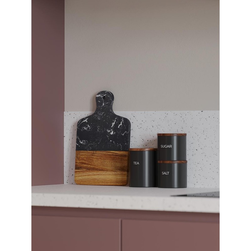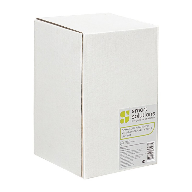 Банка для хранения от бренда Smart Solutions поможет превратить любую кухню в стильное и функциональное пространство, где все лежит на своих местах.Особенности и преимущества:- Каменная керамика – прочный, надежный и термостойкий материал, что делает посуду из нее практичной и долговечной. - Керамика не впитывает запахи, не меняет вкус продуктов и не требует сложного ухода. - Крышка выполнена из акации – благородной породы древесины с эффектным внешним видом и отличными эксплуатационными свойствами. - Наличие специальной силиконовой вставки обеспечивает плотное закрывание, защищая содержимое от заветривания и попадания влаги.Материалы: каменная керамика, акация, силикон. Размеры: 10х10х17 см. Объем: 750 мл. Цвет: черный.Емкость из керамики можно мыть вручную и в посудомоечной машине. Крышку от загрязнений рекомендуется очищать с помощью влажной ткани.