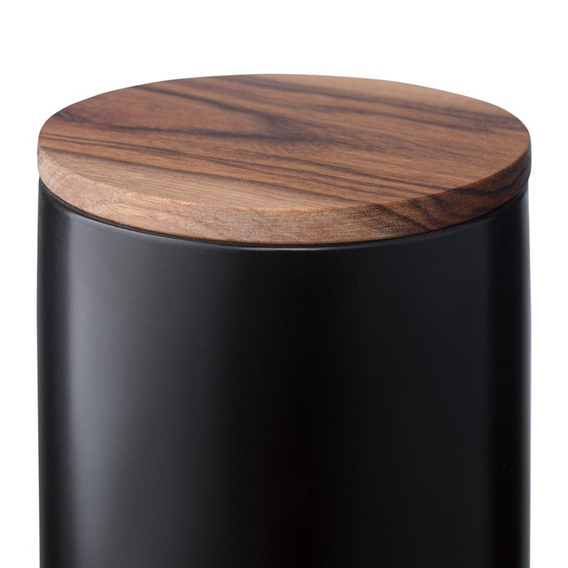 Банка для хранения от бренда Smart Solutions поможет превратить любую кухню в стильное и функциональное пространство, где все лежит на своих местах.Особенности и преимущества:- Каменная керамика – прочный, надежный и термостойкий материал, что делает посуду из нее практичной и долговечной. - Керамика не впитывает запахи, не меняет вкус продуктов и не требует сложного ухода. - Крышка выполнена из акации – благородной породы древесины с эффектным внешним видом и отличными эксплуатационными свойствами. - Наличие специальной силиконовой вставки обеспечивает плотное закрывание, защищая содержимое от заветривания и попадания влаги.Материалы: каменная керамика, акация, силикон. Размеры: 10х10х17 см. Объем: 750 мл. Цвет: черный.Емкость из керамики можно мыть вручную и в посудомоечной машине. Крышку от загрязнений рекомендуется очищать с помощью влажной ткани.