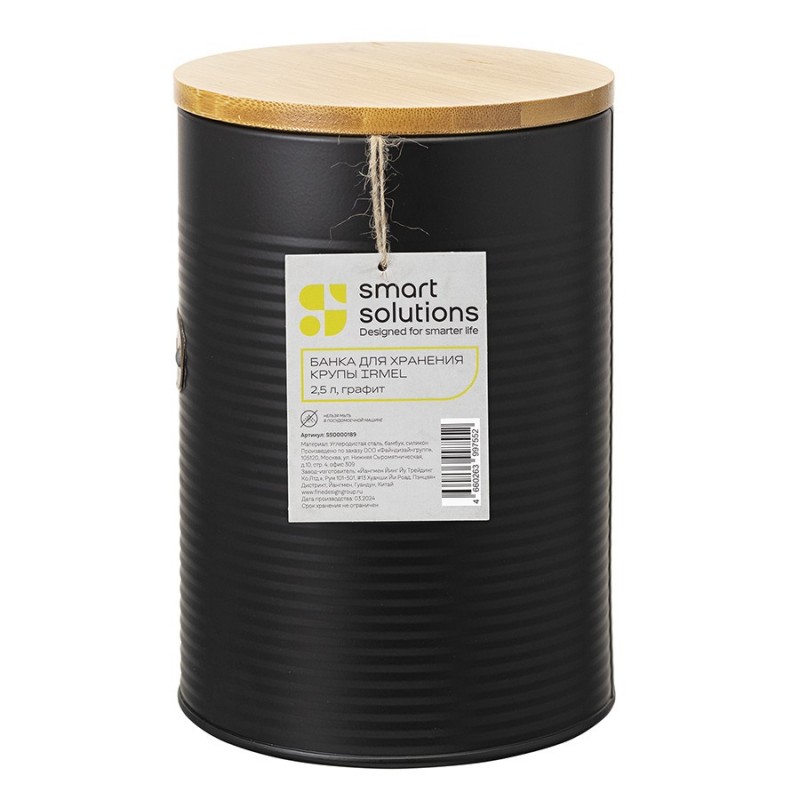 Банка для хранения крупы Irmel от бренда Smart Solutions станет прекрасным дополнением современного кухонного интерьера. Ее дизайн органично вписывается в различные стилевые решения: минимализм, лофт, фьюжн, эклектика, афро, сканди и другие.Особенности и преимущества:- Использование в изготовлении углеродистой стали увеличенной толщины гарантирует емкости отличные эксплуатационные характеристики – устойчивость к повреждениям, износу и простой уход. - Порошковое покрытие защищает металлическую поверхность от коррозии и обеспечивает изделию дополнительную прочность. - Крышка из бамбука имеет увеличенную толщину и силиконовый уплотнитель, благодаря чему плотно прилегает, исключая попадание внутрь банки пыли и влаги.Материалы: углеродистая сталь, бамбук, силикон. Размеры: 13,8x13,8x20 см. Объем: 2,5 л. Цвет: графит.Загрязнения рекомендуется удалять при помощи мягкого влажного материала. После очищения банку необходимо вытереть насухо. Запрещается мытье в посудомоечной машине, использование абразивов и агрессивной бытовой химии.