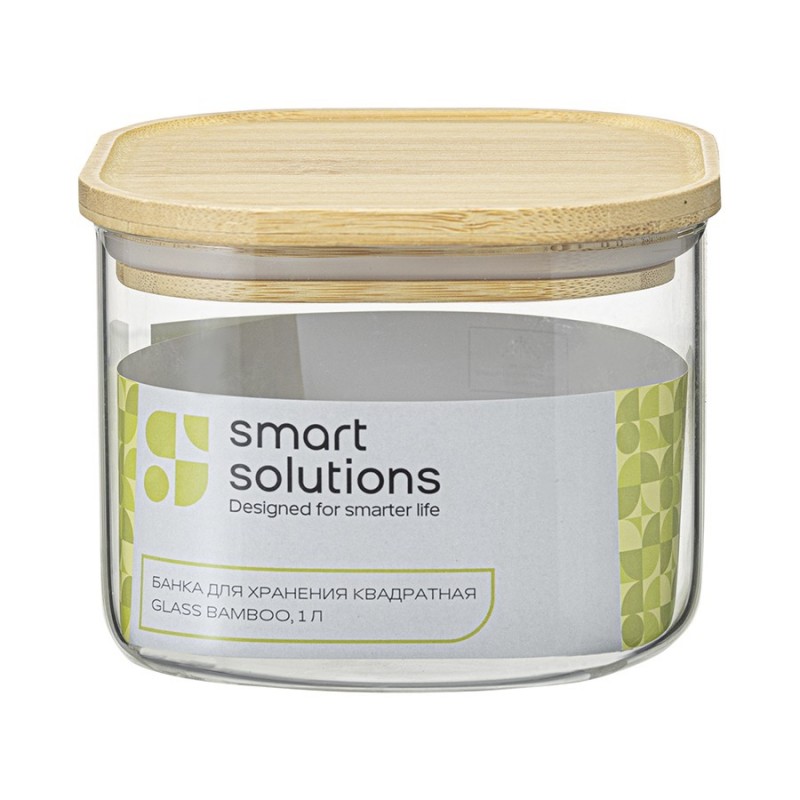 Банка Glass Bamboo от бренда Smart Solutions – удобное и практичное решение для хранения сыпучих продуктов. Вы можете использовать ее под любую крупу, макаронные изделия, сухофрукты, орехи, чай или кофе. Набор из банок разных объемов позволит навести порядок на кухне и дополнить интерьер стильными акцентами.Особенности и преимущества:- Стеклянная емкость идеально подходит для хранения продуктов, так как материал не содержит вредных соединений и химически инертен. - Боросиликатное стекло отличается повышенной прочностью, что гарантирует изделию практичность и долговечность. - Прозрачное стекло позволяет видеть содержимое банки, обеспечивая быстрый доступ к нужным продуктам. - Компактные размеры дают возможность размещать аксессуар в любом удобном месте, будь то полка или кухонный шкаф. - По краю крышки из бамбука предусмотрена силиконовая накладка для плотного закрыванияМатериалы: боросиликатное стекло, бамбук, силикон. Объем: 1 л. Размеры: 12х12х9,6 см.Банку можно мыть в посудомоечной машине без крышки.