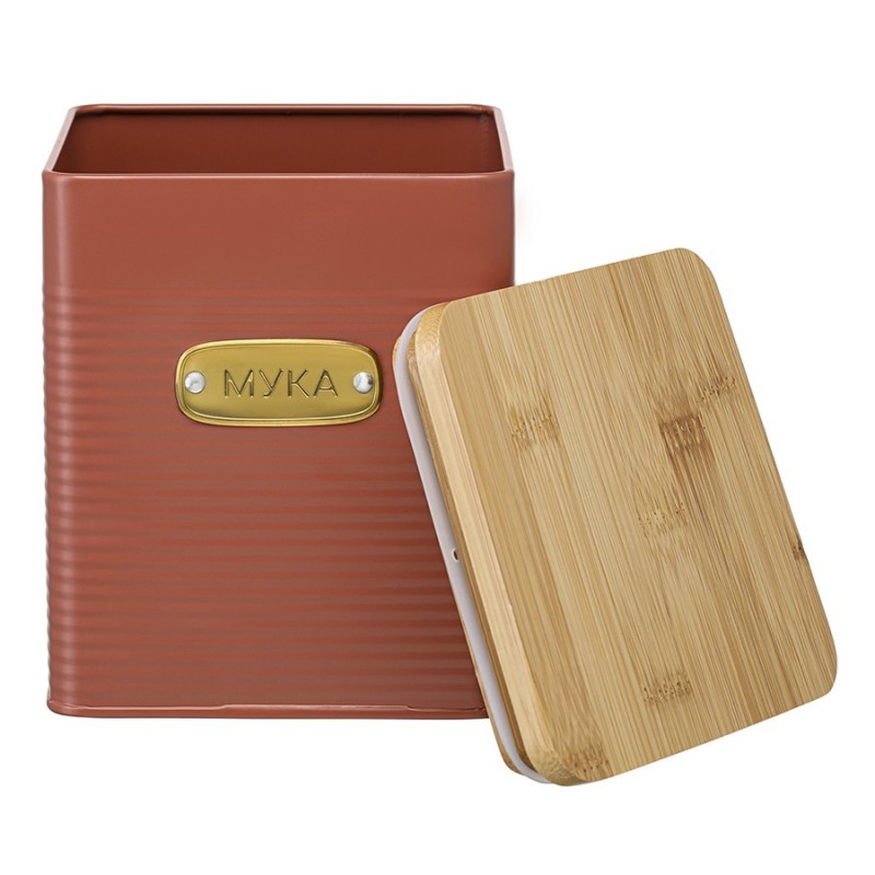 Банка для хранения муки Irmel от бренда Smart Solutions станет прекрасным дополнением современного кухонного интерьера. Ее дизайн органично вписывается в различные стилевые решения: минимализм, лофт, фьюжн, эклектика, афро, сканди и другие.Особенности и преимущества:- Использование в изготовлении углеродистой стали увеличенной толщины гарантирует емкости отличные эксплуатационные характеристики – устойчивость к повреждениям, износу и простой уход. - Порошковое покрытие защищает металлическую поверхность от коррозии и обеспечивает изделию дополнительную прочность. - Крышка из бамбука имеет увеличенную толщину и силиконовый уплотнитель, благодаря чему плотно прилегает, исключая попадание внутрь банки пыли и влаги.Материалы: углеродистая сталь, бамбук, силикон. Размеры: 14,1x14,1x17,3 см. Объем: 3,2 л. Цвет: терракота.Загрязнения рекомендуется удалять при помощи мягкого влажного материала. После очищения банку необходимо вытереть насухо. Запрещается мытье в посудомоечной машине, использование абразивов и агрессивной бытовой химии.
