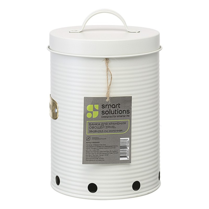 Банка для хранения овощей Irmel от бренда Smart Solutions станет прекрасным дополнением современного кухонного интерьера. Ее дизайн органично вписывается в различные стилевые решения: минимализм, лофт, фьюжн, эклектика, афро, сканди и другие.Особенности и преимущества:- Углеродистая сталь, из которой выполнена емкость, устойчива к повреждениям, износу, не требует специального ухода. - Порошковое покрытие защищает металлическую поверхность от коррозии и обеспечивает изделию дополнительную прочность. - На корпусе банки предусмотрены вентиляционные отверстия для предотвращения отсыревания продуктов и появления плесени. - Наличие крышки исключает попадание внутрь пыли, влаги и солнечных лучей.Материал: углеродистая сталь. Размеры: 18х18х27,5 см. Объем: 6 л. Цвет: молочный.Загрязнения рекомендуется удалять при помощи мягкого влажного материала. После очищения банку необходимо вытереть насухо. Запрещается мытье в посудомоечной машине, использование абразивов и агрессивной бытовой химии.