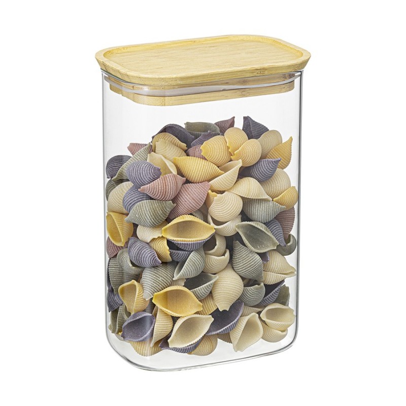 Банка Glass Bamboo от бренда Smart Solutions – удобное и практичное решение для хранения сыпучих продуктов. Вы можете использовать ее под любую крупу, макаронные изделия, сухофрукты, орехи, чай или кофе. Набор из банок разных объемов позволит навести порядок на кухне и дополнить интерьер стильными акцентами.Особенности и преимущества:- Стеклянная емкость идеально подходит для хранения продуктов, так как материал не содержит вредных соединений и химически инертен. - Боросиликатное стекло отличается повышенной прочностью, что гарантирует изделию практичность и долговечность. - Прозрачное стекло позволяет видеть содержимое банки, обеспечивая быстрый доступ к нужным продуктам. - Компактные размеры дают возможность размещать аксессуар в любом удобном месте, будь то полка или кухонный шкаф. - По краю крышки из бамбука предусмотрена силиконовая накладка для плотного закрыванияМатериалы: боросиликатное стекло, бамбук, силикон. Объем: 1,3 л. Размеры: 12х8х18,7 см.Банку можно мыть в посудомоечной машине без крышки.