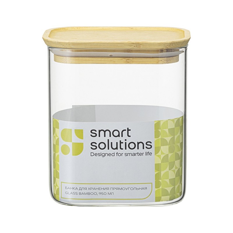 Банка Glass Bamboo от бренда Smart Solutions – удобное и практичное решение для хранения сыпучих продуктов. Вы можете использовать ее под любую крупу, макаронные изделия, сухофрукты, орехи, чай или кофе. Набор из банок разных объемов позволит навести порядок на кухне и дополнить интерьер стильными акцентами.Особенности и преимущества:- Стеклянная емкость идеально подходит для хранения продуктов, так как материал не содержит вредных соединений и химически инертен. - Боросиликатное стекло отличается повышенной прочностью, что гарантирует изделию практичность и долговечность. - Прозрачное стекло позволяет видеть содержимое банки, обеспечивая быстрый доступ к нужным продуктам. - Компактные размеры дают возможность размещать аксессуар в любом удобном месте, будь то полка или кухонный шкаф. - По краю крышки из бамбука предусмотрена силиконовая накладка для плотного закрыванияМатериалы: боросиликатное стекло, бамбук, силикон. Объем: 950 мл. Размеры: 12х8х14,2 см.Банку можно мыть в посудомоечной машине без крышки.