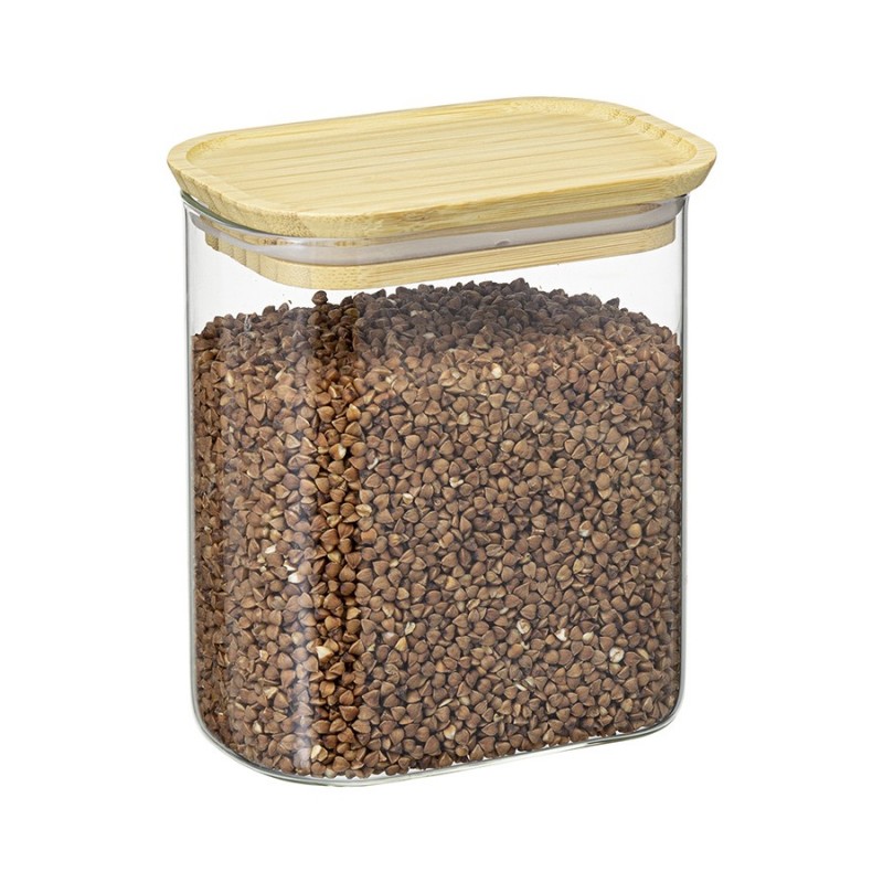 Банка Glass Bamboo от бренда Smart Solutions – удобное и практичное решение для хранения сыпучих продуктов. Вы можете использовать ее под любую крупу, макаронные изделия, сухофрукты, орехи, чай или кофе. Набор из банок разных объемов позволит навести порядок на кухне и дополнить интерьер стильными акцентами.Особенности и преимущества:- Стеклянная емкость идеально подходит для хранения продуктов, так как материал не содержит вредных соединений и химически инертен. - Боросиликатное стекло отличается повышенной прочностью, что гарантирует изделию практичность и долговечность. - Прозрачное стекло позволяет видеть содержимое банки, обеспечивая быстрый доступ к нужным продуктам. - Компактные размеры дают возможность размещать аксессуар в любом удобном месте, будь то полка или кухонный шкаф. - По краю крышки из бамбука предусмотрена силиконовая накладка для плотного закрыванияМатериалы: боросиликатное стекло, бамбук, силикон. Объем: 950 мл. Размеры: 12х8х14,2 см.Банку можно мыть в посудомоечной машине без крышки.