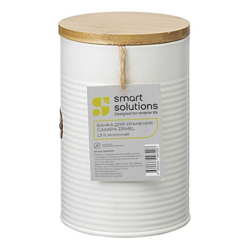 Банка для хранения сахара Irmel от бренда Smart Solutions станет прекрасным дополнением современного кухонного интерьера. Ее дизайн органично вписывается в различные стилевые решения: минимализм, лофт, фьюжн, эклектика, афро, сканди и другие.Особенности и преимущества:- Использование в изготовлении углеродистой стали увеличенной толщины гарантирует емкости отличные эксплуатационные характеристики – устойчивость к повреждениям, износу и простой уход. - Порошковое покрытие защищает металлическую поверхность от коррозии и обеспечивает изделию дополнительную прочность. - Крышка из бамбука имеет увеличенную толщину и силиконовый уплотнитель, благодаря чему плотно прилегает, исключая попадание внутрь банки пыли и влаги.Материалы: углеродистая сталь, бамбук, силикон. Размеры: 11х11х17 см. Объем: 1,3 л. Цвет: молочный.Загрязнения рекомендуется удалять при помощи мягкого влажного материала. После очищения банку необходимо вытереть насухо. Запрещается мытье в посудомоечной машине, использование абразивов и агрессивной бытовой химии.
