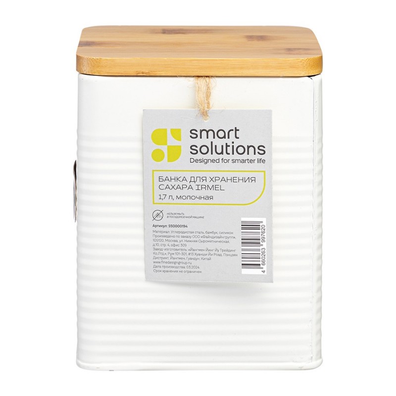 Банка для хранения сахара Irmel от бренда Smart Solutions станет прекрасным дополнением современного кухонного интерьера. Ее дизайн органично вписывается в различные стилевые решения: минимализм, лофт, фьюжн, эклектика, афро, сканди и другие.Особенности и преимущества:- Использование в изготовлении углеродистой стали гарантирует емкости отличные эксплуатационные характеристики – устойчивость к повреждениям, износу и простой уход. - Порошковое покрытие защищает металлическую поверхность от коррозии и обеспечивает изделию дополнительную прочность. - Крышка из бамбука с силиконовым уплотнителем плотно прилегает, исключая попадание внутрь банки пыли и влаги.Материалы: углеродистая сталь, бамбук, силикон. Размеры: 11,3x11,3x13,7 см. Объем: 1,7 л. Цвет: молочный.Загрязнения рекомендуется удалять при помощи мягкого влажного материала. После очищения банку необходимо вытереть насухо. Запрещается мытье в посудомоечной машине, использование абразивов и агрессивной бытовой химии.
