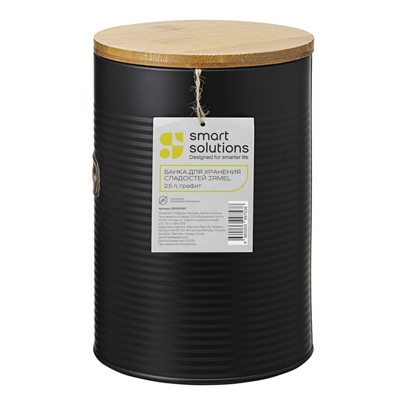 Банка для хранения сладостей Irmel от бренда Smart Solutions станет прекрасным дополнением современного кухонного интерьера. Ее дизайн органично вписывается в различные стилевые решения: минимализм, лофт, фьюжн, эклектика, афро, сканди и другие.Особенности и преимущества:- Использование в изготовлении углеродистой стали увеличенной толщины гарантирует емкости отличные эксплуатационные характеристики – устойчивость к повреждениям, износу и простой уход. - Порошковое покрытие защищает металлическую поверхность от коррозии и обеспечивает изделию дополнительную прочность. - Крышка из бамбука имеет увеличенную толщину и силиконовый уплотнитель, благодаря чему плотно прилегает, исключая попадание внутрь банки пыли и влаги.Материалы: углеродистая сталь, бамбук, силикон. Размеры: 13,7x13,7x20 см. Объем: 2,5 л. Цвет: графит.Загрязнения рекомендуется удалять при помощи мягкого влажного материала. После очищения банку необходимо вытереть насухо. Запрещается мытье в посудомоечной машине, использование абразивов и агрессивной бытовой химии.