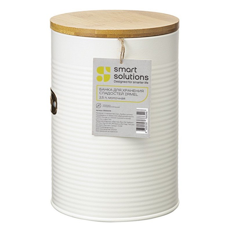 Банка для хранения сладостей Irmel от бренда Smart Solutions станет прекрасным дополнением современного кухонного интерьера. Ее дизайн органично вписывается в различные стилевые решения: минимализм, лофт, фьюжн, эклектика, афро, сканди и другие.Особенности и преимущества:- Использование в изготовлении углеродистой стали увеличенной толщины гарантирует емкости отличные эксплуатационные характеристики – устойчивость к повреждениям, износу и простой уход. - Порошковое покрытие защищает металлическую поверхность от коррозии и обеспечивает изделию дополнительную прочность. - Крышка из бамбука имеет увеличенную толщину и силиконовый уплотнитель, благодаря чему плотно прилегает, исключая попадание внутрь банки пыли и влаги.Материалы: углеродистая сталь, бамбук, силикон. Размеры: 13,7x13,7x20 см. Объем: 2,5 л. Цвет: молочный.Загрязнения рекомендуется удалять при помощи мягкого влажного материала. После очищения банку необходимо вытереть насухо. Запрещается мытье в посудомоечной машине, использование абразивов и агрессивной бытовой химии.