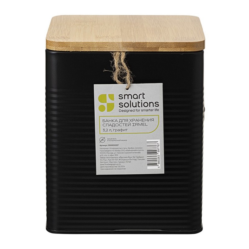 Банка для хранения сладостей Irmel от бренда Smart Solutions станет прекрасным дополнением современного кухонного интерьера. Ее дизайн органично вписывается в различные стилевые решения: минимализм, лофт, фьюжн, эклектика, афро, сканди и другие.Особенности и преимущества:- Использование в изготовлении углеродистой стали увеличенной толщины гарантирует емкости отличные эксплуатационные характеристики – устойчивость к повреждениям, износу и простой уход. - Порошковое покрытие защищает металлическую поверхность от коррозии и обеспечивает изделию дополнительную прочность. - Крышка из бамбука имеет увеличенную толщину и силиконовый уплотнитель, благодаря чему плотно прилегает, исключая попадание внутрь банки пыли и влаги.Материалы: углеродистая сталь, бамбук, силикон. Размеры: 14x14x17,2 см. Объем: 3,2 л. Цвет: графит.Загрязнения рекомендуется удалять при помощи мягкого влажного материала. После очищения банку необходимо вытереть насухо. Запрещается мытье в посудомоечной машине, использование абразивов и агрессивной бытовой химии.