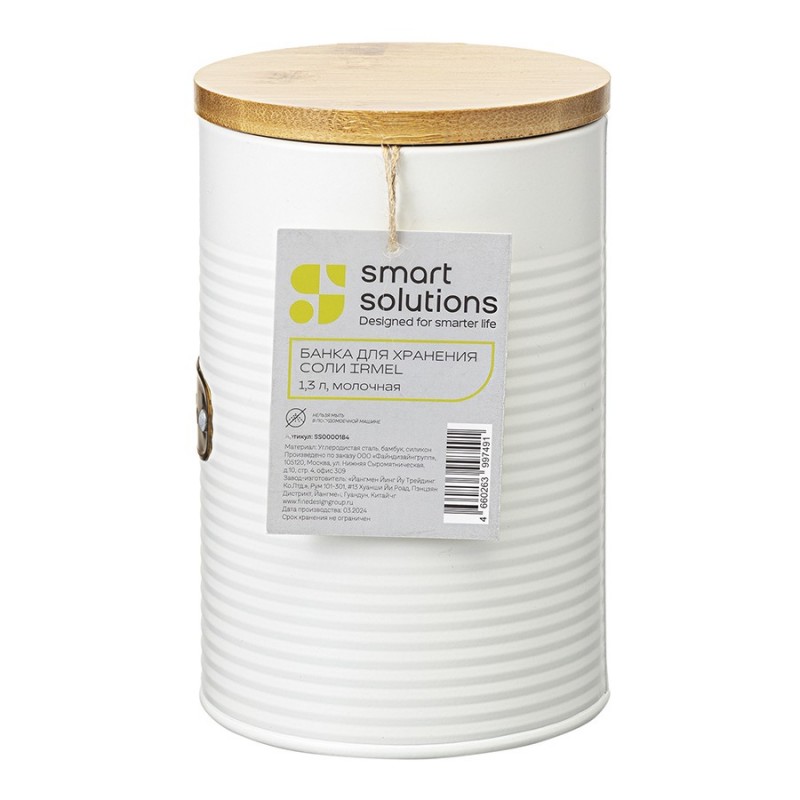 Банка для хранения соли Irmel от бренда Smart Solutions станет прекрасным дополнением современного кухонного интерьера. Ее дизайн органично вписывается в различные стилевые решения: минимализм, лофт, фьюжн, эклектика, афро, сканди и другие.Особенности и преимущества:- Использование в изготовлении углеродистой стали увеличенной толщины гарантирует емкости отличные эксплуатационные характеристики – устойчивость к повреждениям, износу и простой уход. - Порошковое покрытие защищает металлическую поверхность от коррозии и обеспечивает изделию дополнительную прочность. - Крышка из бамбука имеет увеличенную толщину и силиконовый уплотнитель, благодаря чему плотно прилегает, исключая попадание внутрь банки пыли и влаги.Материалы: углеродистая сталь, бамбук, силикон. Размеры: 11х11х17 см. Объем: 1,3 л. Цвет: молочный.Загрязнения рекомендуется удалять при помощи мягкого влажного материала. После очищения банку необходимо вытереть насухо. Запрещается мытье в посудомоечной машине, использование абразивов и агрессивной бытовой химии.