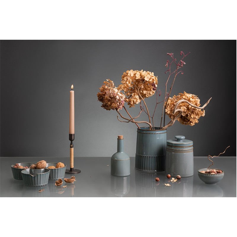 Банка для хранения темно-серого цвета из коллекции Kitchen Spirit поможет навести порядок на кухне и выигрышно дополнит любой интерьер. Емкость идеально подходит для сахара, круп, муки и других сыпучих продуктов. Посуда из фарфора с дизайном в рустикальном стиле прекрасно гармонирует с предметами сервировки из стекла, керамики, бамбука. Лаконичный фактурный декор в сочетании с глянцевой глазурью обеспечивает изделию презентабельный вид. Экологически чистый и практичный материал отличается прочностью, устойчивостью к сколам, легко моется. Все предметы из коллекции Kitchen Spirit отлично комбинируются между собой.Отличительной особенностью линейки является покрытие из реактивной глазури, которое создает на поверхности посуды уникальные узоры. Во время обжига фарфора возникает химическая реакция, обычно плавление или окисление, в результате которой и получается нужный рисунок. Благодаря такой обработке найти два идентичных изделия практически невозможно. Именно за счет своей индивидуальности и неповторимости узора столовая посуда и аксессуары для сервировки с реактивной глазурью стали трендом в мире дизайна и декора.! Важно, что возможное неравномерное окрашивание, “подтеки” или “наплывы” глазури не являются браком.Объем: 820 мл Высота: 16,5 см Материал: фарфор! Можно использовать в микроволновой печи ! Можно мыть в посудомоечной машине ! Можно использовать в духовке при температуре не более 200° C ! Можно замораживать