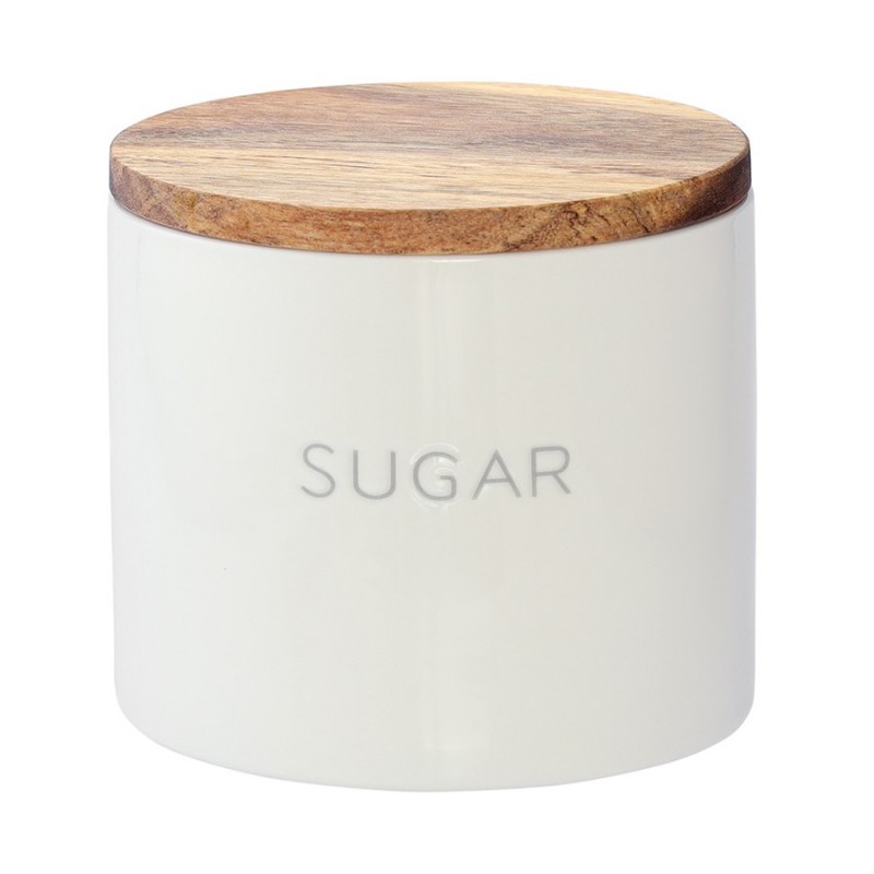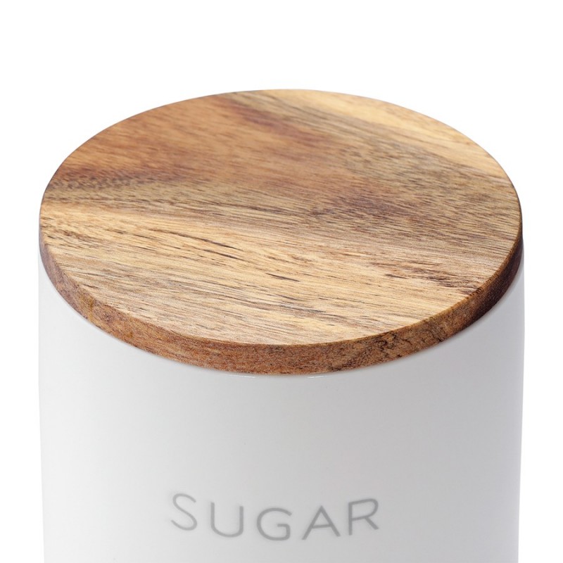 Банка от бренда Smart Solutions поможет навести порядок на кухне и обеспечит удобное хранение сыпучего, кускового сахара и рафинада.Особенности и преимущества:- Каменная керамика отличается прочностью, устойчивостью к износу, не боится потускнения, царапин и пятен. - Материал не впитывает загрязнения, не меняет вкус, запах продуктов и не требует сложного ухода. - Крышка изготовлена из натуральной древесины акации с отличными эксплуатационными свойствами и дополнена силиконовой вставкой для плотного закрывания. - На дне банки предусмотрена силиконовая накладка, которая препятствует скольжению.Материалы: каменная керамика, акация, силикон. Размеры: 10х10х9 см. Объем: 400 мл. Цвет: белый.Емкость из керамики можно мыть вручную и в посудомоечной машине. Крышку от загрязнений рекомендуется очищать с помощью влажной ткани.