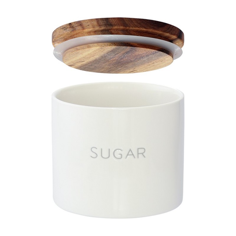 Банка от бренда Smart Solutions поможет навести порядок на кухне и обеспечит удобное хранение сыпучего, кускового сахара и рафинада.Особенности и преимущества:- Каменная керамика отличается прочностью, устойчивостью к износу, не боится потускнения, царапин и пятен. - Материал не впитывает загрязнения, не меняет вкус, запах продуктов и не требует сложного ухода. - Крышка изготовлена из натуральной древесины акации с отличными эксплуатационными свойствами и дополнена силиконовой вставкой для плотного закрывания. - На дне банки предусмотрена силиконовая накладка, которая препятствует скольжению.Материалы: каменная керамика, акация, силикон. Размеры: 10х10х9 см. Объем: 400 мл. Цвет: белый.Емкость из керамики можно мыть вручную и в посудомоечной машине. Крышку от загрязнений рекомендуется очищать с помощью влажной ткани.