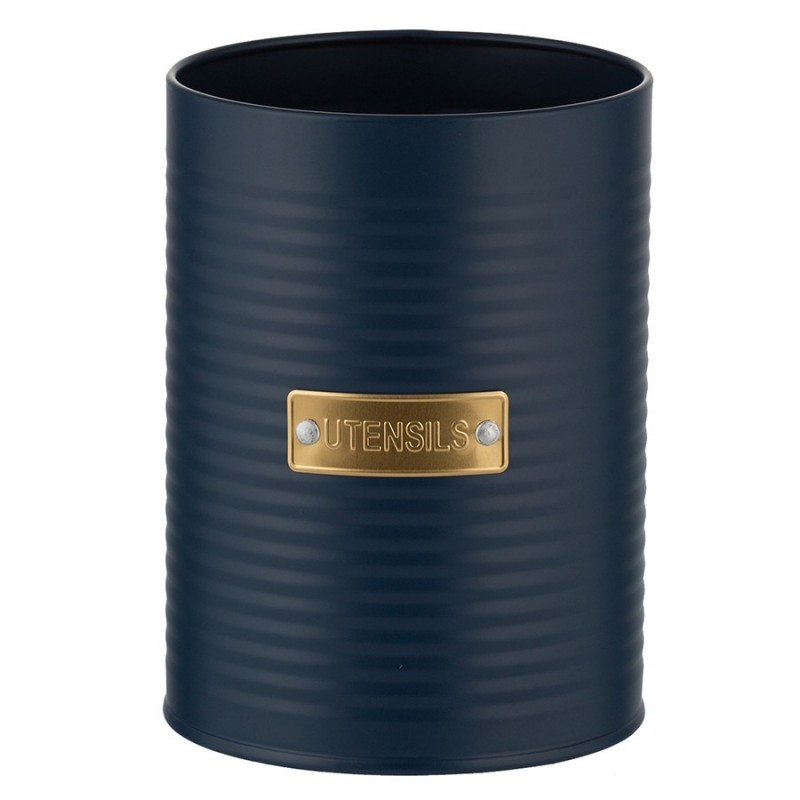 Емкость Otto – удобное решение для хранения кухонных инструментов и столовых приборов. Эргономичный контейнер выполнен из прочной, устойчивой к коррозии и деформации углеродистой стали. Рельефная поверхность и красивое сочетание золотистого декора с матовым покрытием насыщенного синего цвета делает дизайн интересным. Такой аксессуар отлично вписывается в интерьер, оформленный в классическом и современном стиле.Материалы: углеродистая сталь. Объем: 1,4 л. Цвет: синий.Перед первым использованием емкость рекомендуется хорошо вымыть вручную в теплой воде с мягким моющим средством. Запрещается применение абразивных материалов и агрессивной бытовой химии.