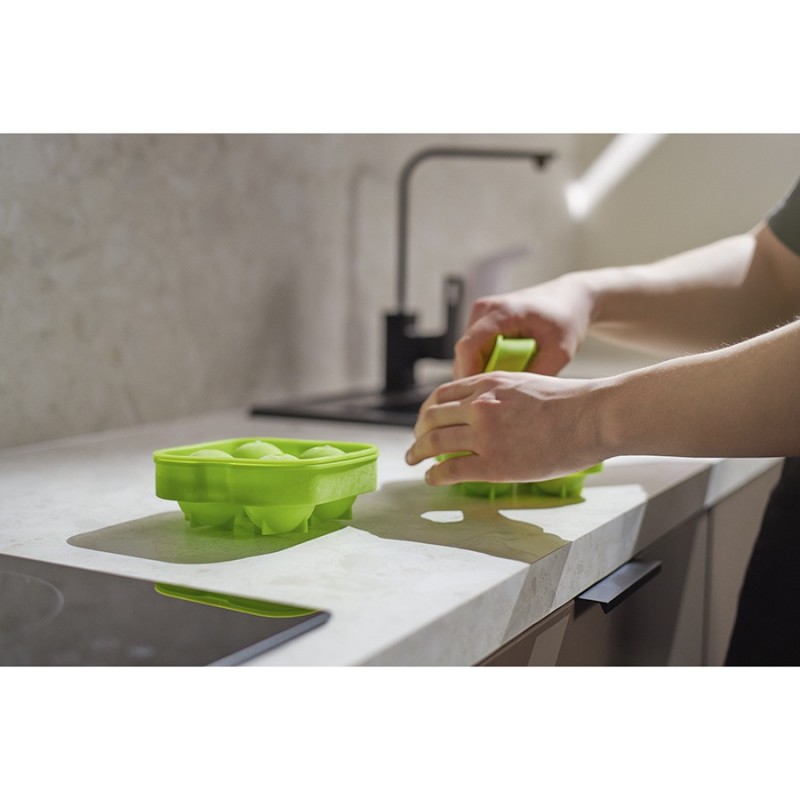 Форма Freeze позволяет получить лед в виде крупных шаров, которые выглядят невероятно эффектно в любых напитках. Заполните форму водой через специальные отверстия и поместите в морозилку. Уже через несколько часов вы будете готовы удивлять гостей!Особенности и преимущества:- Пищевой силикон не выделяет вредных веществ при заморозке и при контакте с продуктами. - Материал прочный, долговечный, термостойкий, не теряет своих первоначальных свойств при многократном использовании. - Силиконовая форма обладает хорошей гибкостью, что позволяет легко извлекать ледяные шары без нарушения их целостности. - В комплект входит воронка для заливания воды в ячейки через специальные отверстия. - Форма имеет компактные размеры, благодаря чему не занимает много места в морозилке.Материал: силикон. Размеры формы: 12х12,5х5 см. Диаметр одной ячейки: 4,5 см.Можно мыть вручную и в посудомоечной машине.