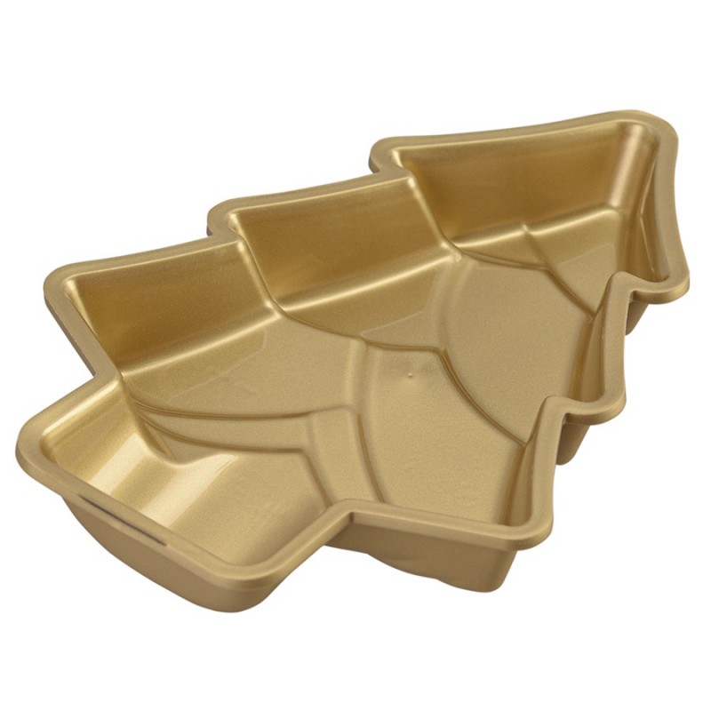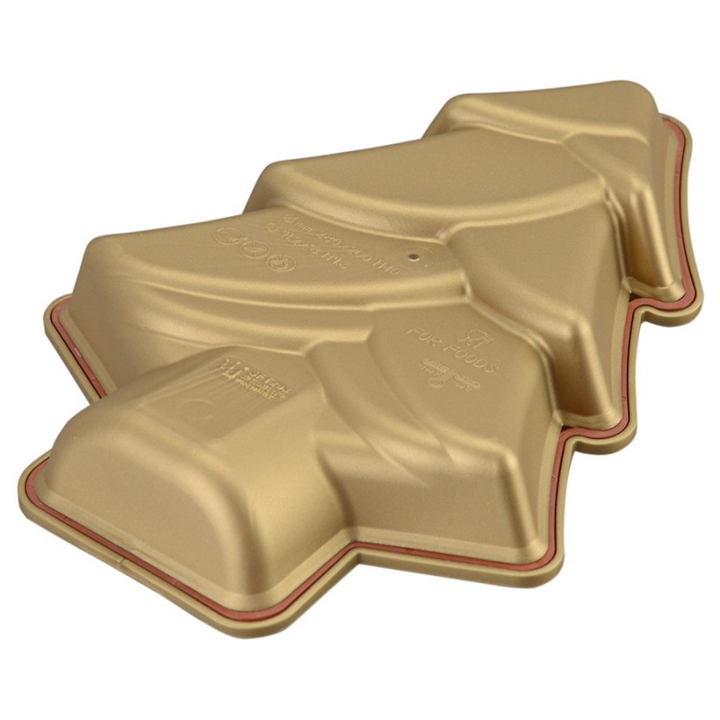 Форма позволит приготовить пирожное в виде рождественской ели.Форма выдерживает температуру от - 60 до + 230 °С. Силикон не содержит вредный бисфенол-А и соответствует европейским стандартам качества. Он не имеет запаха и не дымится во время готовки. Материал гибкий, прочный, устойчивый к перепадам температур. Форма выдерживает до 3000 использований. Перед использованием необходимо смазать изделие маслом. Размеры: 28 х 20 х 4 см. Объем: 1 л.При чистке не используйте острые предметы, не режьте десерты прямо в форме. Можно мыть в посудомоечной машине при условии, что не используются агрессивные средства с осветляющим или ароматическим эффектом, это приводит к появлению на форме белых пятен и налета. Контакт с такими продуктами, как кокосовое масло и томаты, приводит к появлению пятен, которые легко устранить, положив форму на час в духовку, разогретую на 200-220 °С. Для удаления жира достаточно прокипятить около 10 минут. Подходит для хранения в холодильнике.