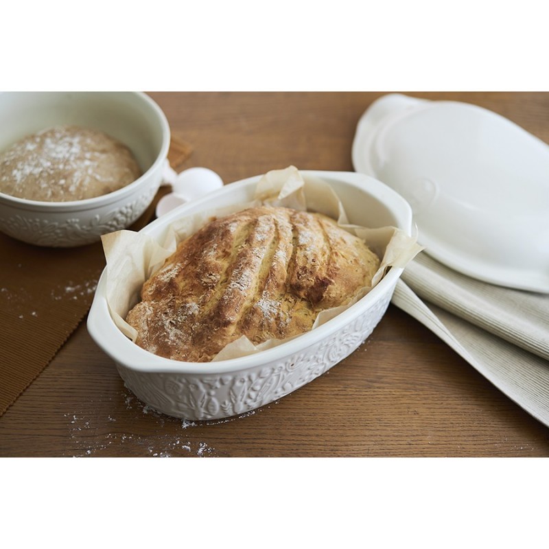 Форма для выпечки из коллекции Birds of Paradise – качественная посуда из экологичной каменной керамики, которая поможет легко приготовить вкусный и ароматный хлеб в домашних условиях.Особенности и преимущества:- Изготовленная из каменной керамики форма равномерно прогревается и создает условия для идеального пропекания теста. - Благодаря высокой прочности и устойчивости материала к износу изделие не теряет привлекательный внешний вид на протяжении всего срока службы. - Покрытие глазурью упрощает уход, обеспечивает декоративность и дополнительную защиту от внешних воздействий. - Отличительной особенностью серии является объемный узор природной тематики, добавляющий дизайну элегантные нотки. - Форма идеально подходит для выпекания как белого, так и черного хлеба.Наши продукты прошли испытания на отсутствие в составе свинца и кадмия в соответствии со стандартными тестами FDA.Коллекция Birds of Paradise разработана английской художницей Karen Wall, основным направлением творчества которой является создание иллюстраций для посуды, домашнего текстиля и детских книг. В основе дизайна – природные мотивы, вдохновленные традиционным фольклором Великобритании 19-го века. Атмосфера волшебного леса с райскими птицами погружает в мир добрых грез и фантазий, где всегда тепло, уютно и есть место чудесам.Материал: каменная керамика. Размеры: 25х38х15,5 см. Объем: 4 л. Цвет: кремовый.Можно использовать в микроволновой печи, духовке при температуре не более 230° C, а также замораживать при температуре не ниже -20° C. Допускается мытье в посудомоечной машине.
