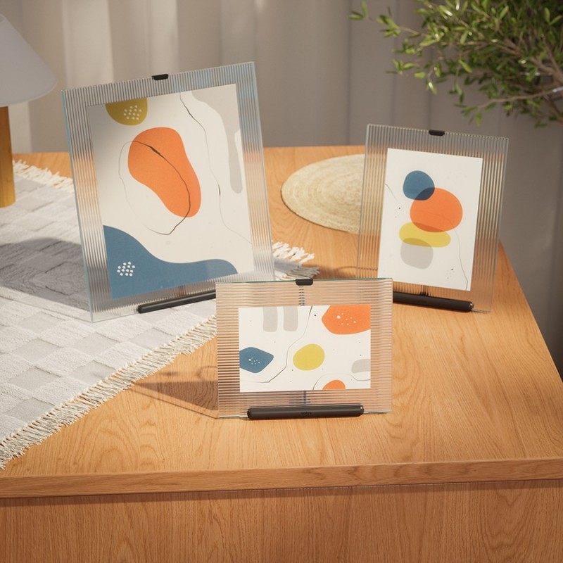 Фоторамка Flute из ребристого стекла подчеркнет красоту ваших снимков и украсит интерьер. Благодаря минималистичному дизайну она легко впишется в различные стили оформления, а практичные материалы обеспечат удобное использование. Рамка имеет устойчивое металлическое основание и подходит для фотографий формата 10х15 см и 13х18 см.Материалы: цинк, стекло, сталь. Размеры: 26,1х14,6х30,4 см. Цвет основания: черный.Пыль и загрязнения можно удалять при помощи мягкого влажного материала. Запрещается использование абразивов и агрессивной бытовой химии.